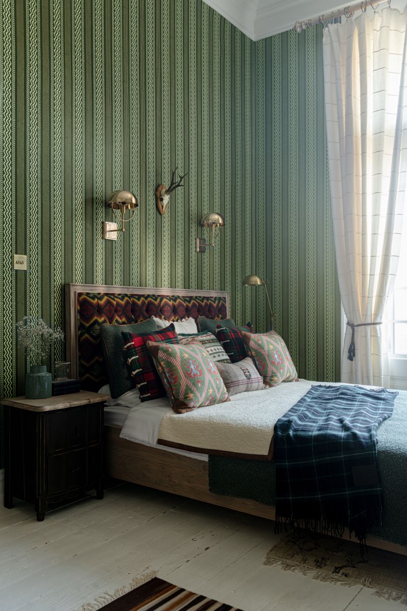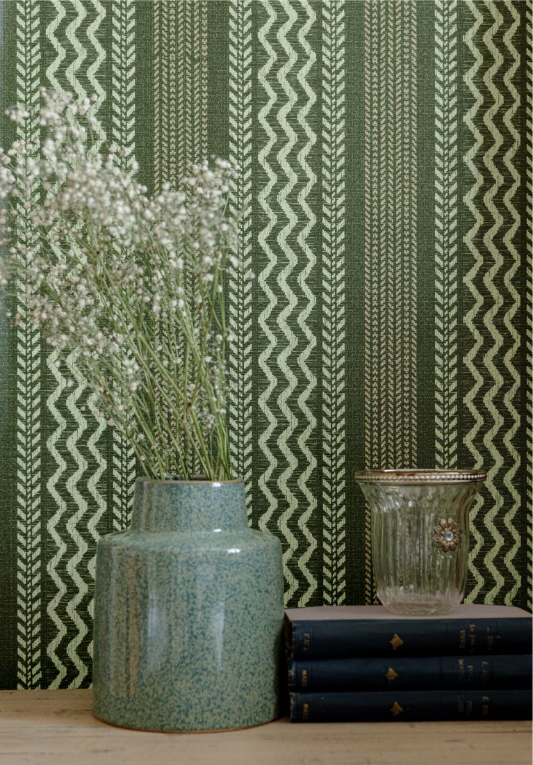 Diese nach der österreichischen Stadt JOCHBERG benannte ergänzende Tapete verfügt über einen eleganten, aber unglaublich detaillierten Streifen. Es erinnert an Tiroler Strick und traditionelle Stoffe, seine ordentlichen Zickzacks und winzigen Häkchen vereinen sich zu einem vielseitigen Design in einer Reihe klassischer Farbkombinationen.