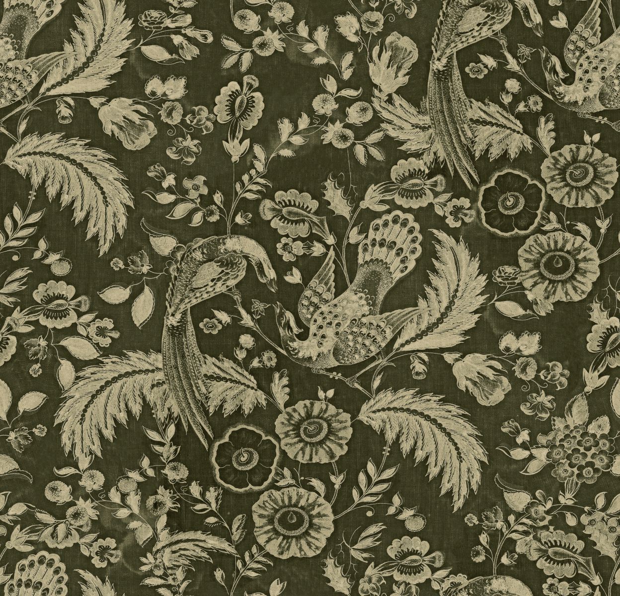 Wie ein klassischer Tapetendruck ist dieses makellos gezeichnete Design leicht und dennoch voller Charakter. Exotische Vögel mit eleganten, gefiederten Schwänzen tanzen und stürzen zwischen einem Teppich aus zarten Blumen und Blättern. Ein stilvolles, zeitloses Tapetendesign, das Sie zurück in die Eleganz des Tiroler High-End-Interieurs versetzt.