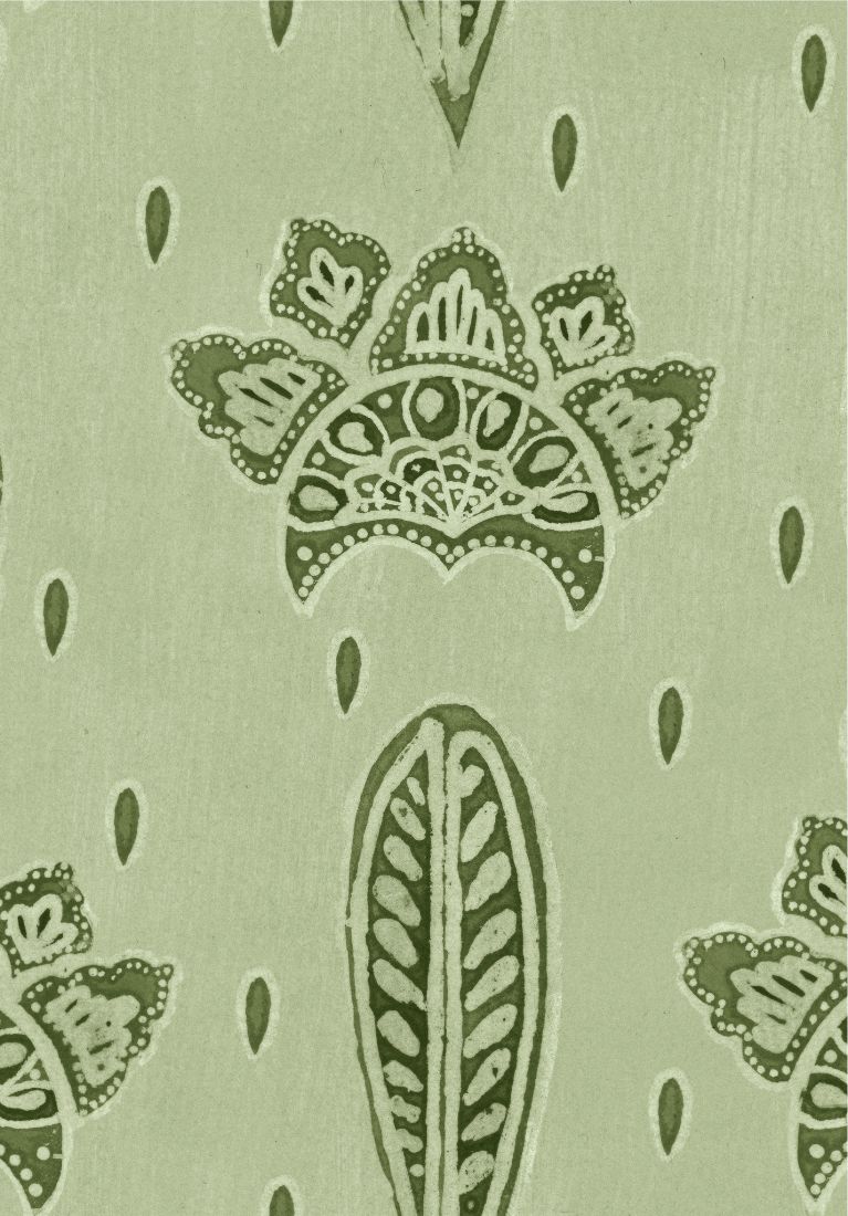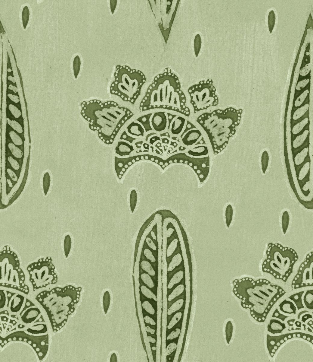 Tanzen Sie durch den tropischen Dschungel zum Rhythmus der javanischen Gongs und machen Sie einen Soundtrack aus dem Rhythmus der raschelnden Palmen mit BETHEL BATIK, einem Muster, das die alte indonesische Kunst des Zeichnens und Färbens mit heißem Wachs zeigt. Der subtile Hintergrund ist mit traditionellen Schotenformen und komplizierten Kronen verziert, die von zarten Tropfen umgeben sind, und bringt die handwerkliche Natur der einzigartigen Formen in den Fokus, wobei seine verbrannten Sonnenuntergangstöne zu beruhigenden Neutralen vor einem blassen Hintergrund werden.
