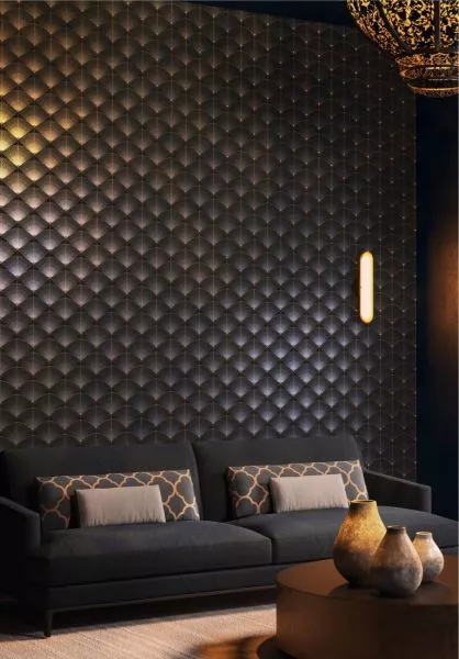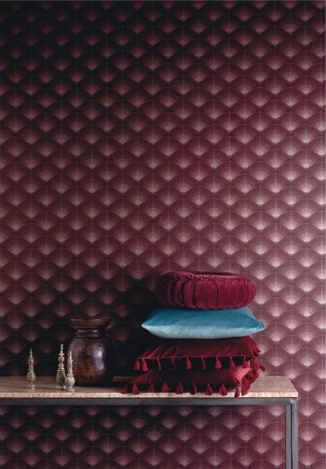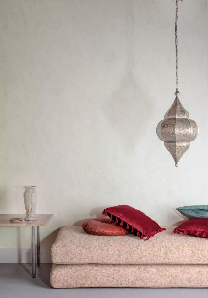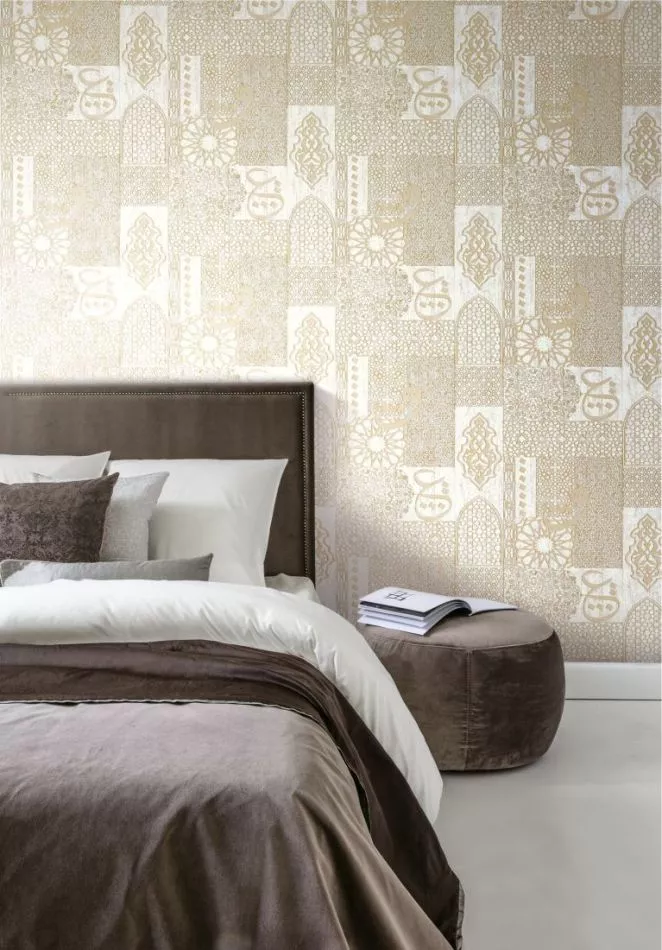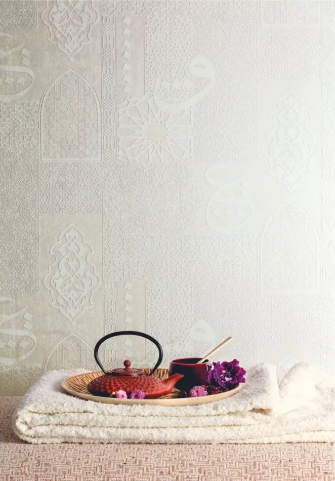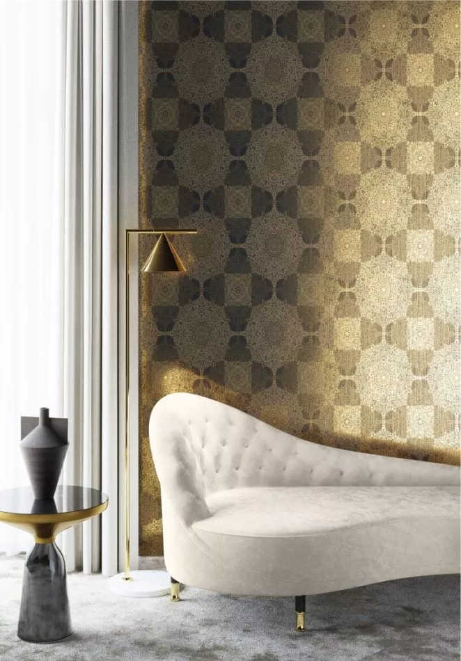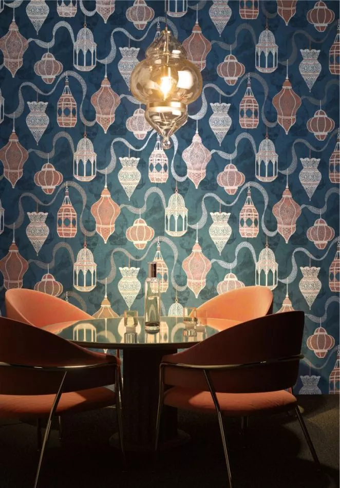 bunten Mosaiken, authentischer Architektur und stilvollem Marmor. Wir begannen mit Glanz und spielten mit Licht. Das Ganze kombinierten wir mit romantischen Lampions, goldenen Akzenten und rostigen Tönen und erhielten auf diese Weise eine Gemütlichkeit ausstrahlende Kollektion. Aber Masureel wäre nicht Masureel, wenn wir nicht auch unsere eigenen Akzente setzen wollten. Schließlich strahlen die orientalischen Motive nicht nur Üppigkeit, Wärme und Frivolität aus. Die traditionellen Zeichnungen  bieten  auch  viele  neue  Möglichkeiten .  Also  haben  wir  die orientalischen Designs auf ihr Wesentliches reduziert