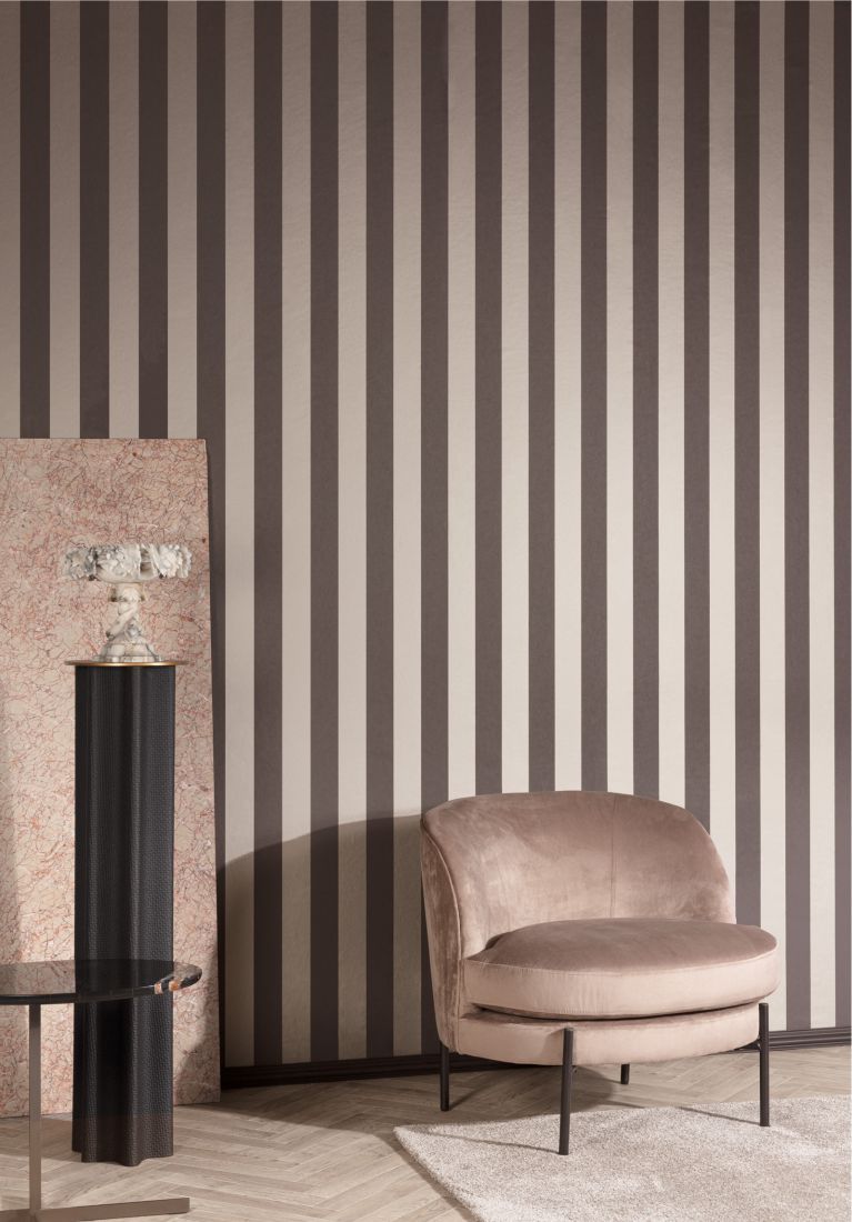 Natürlich darf auch eine gestreifte Tapete in dieser klassischen Kollektion nicht fehlen. Wir haben uns für den klassischen Streifen gleicher Breite in zwei Farben entschieden. Der Streifen erhält durch die Anwendung verschiedener Drucktechniken einen besonderen Charakter. Farbkombinationen wie traditionelles Schwarz-Weiß, romantisches Violett-Rosa oder ein moderner Blau-Bronze-Kontrast: Die Tapete Cyprian ist in 8 verschiedenen Farbkombinationen erhältlich.