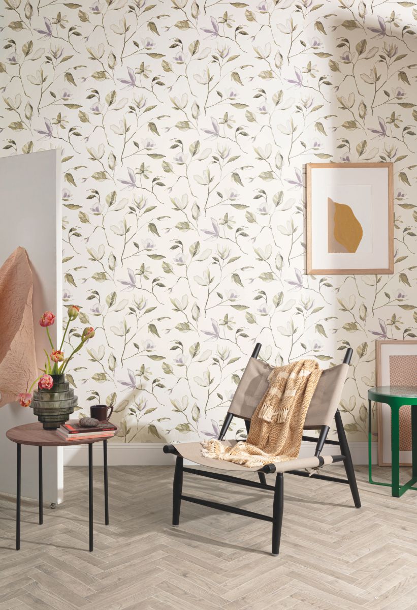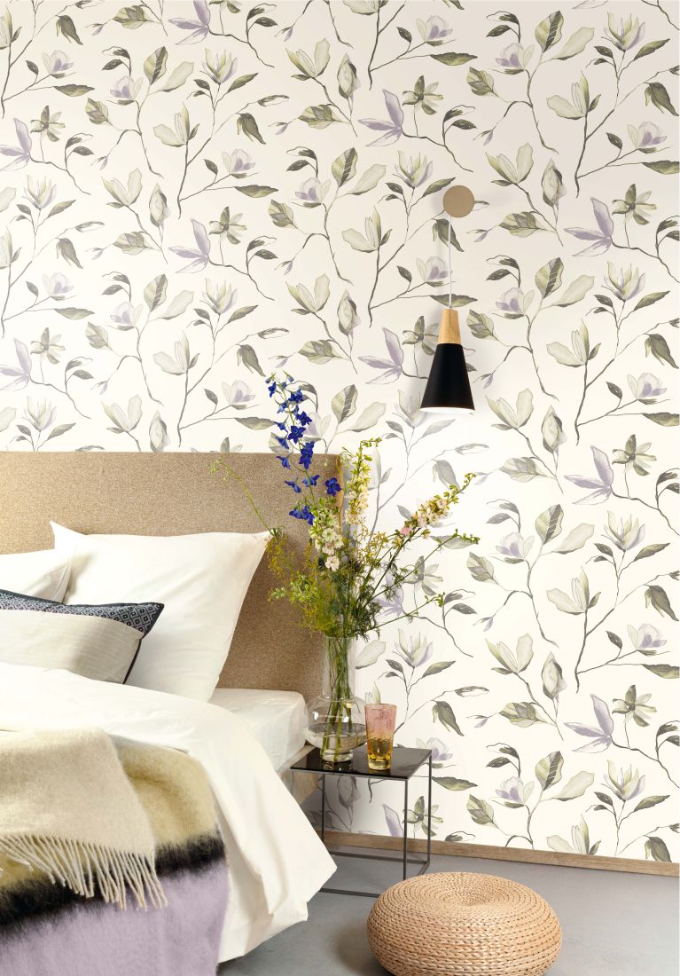 Mit dieser handgezeichneten, freien Interpretation der Magnolie holen Sie Natur und Ruhe zu sich nach Hause. Das Design Blooming ist in romantischen, sanften Pastelltönen und einigen kräftigeren Farbkombinationen erhältlich.