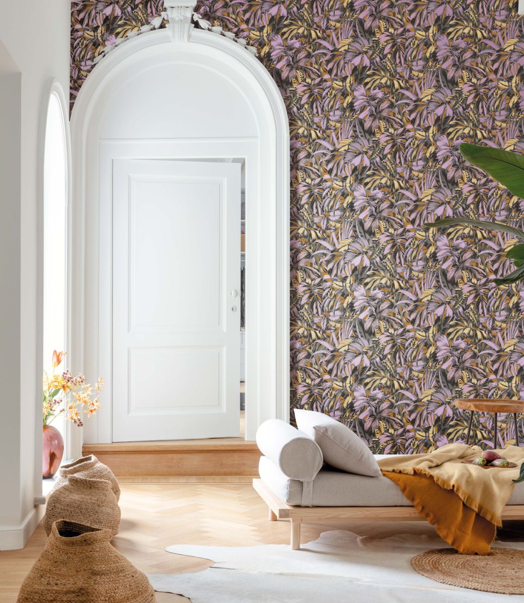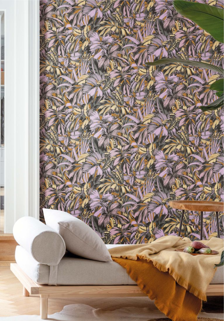 Bonita ist eine Collage aus Radierungen botanischer Prints. Die verschiedenen Palmen fügen sich zu einem stimmigen Allover aus Blättern zusammen. Dieser Dschungel-Look mischt die Kollektion ordentlich auf.