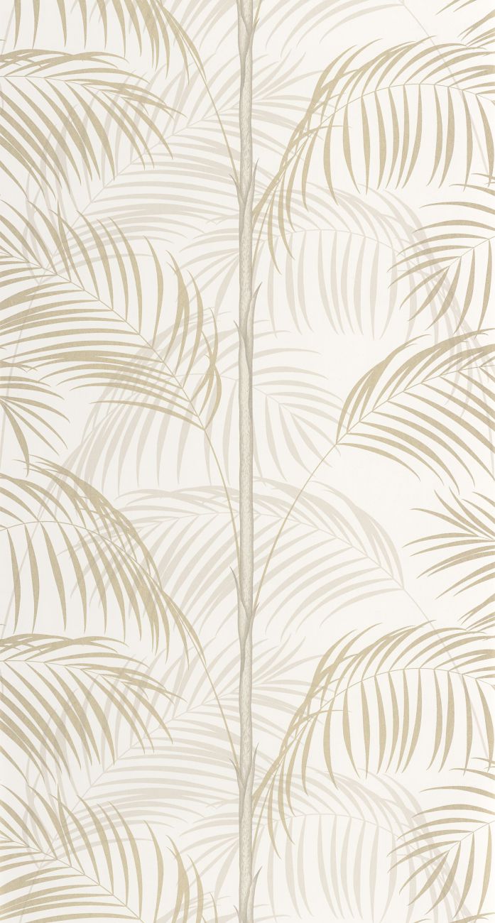 Unter goldenen Palmen. Le Tout-Paris umrahmt sein XL-Muster aus Palmenblättern mit goldenen oder silbernen Akzenten und verleiht ihm eine exquisite Eleganz. Um die organische Wirkung noch stärker zu betonen, treten zarte Grüntöne in den Vordergrund: Oliv, Khaki oder Blätterdach.