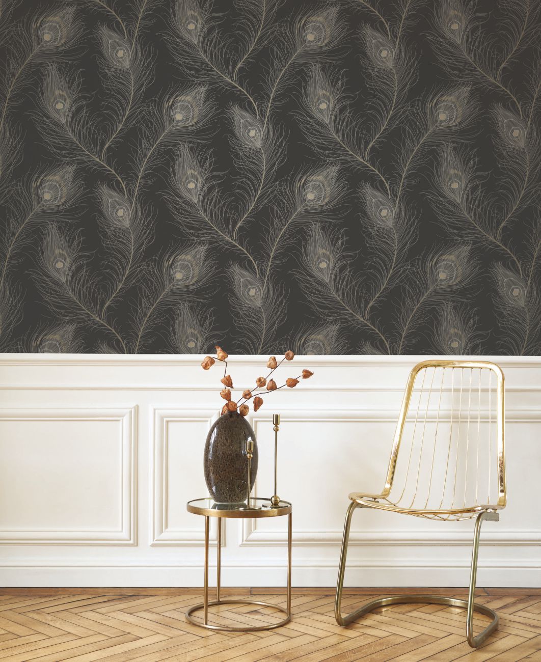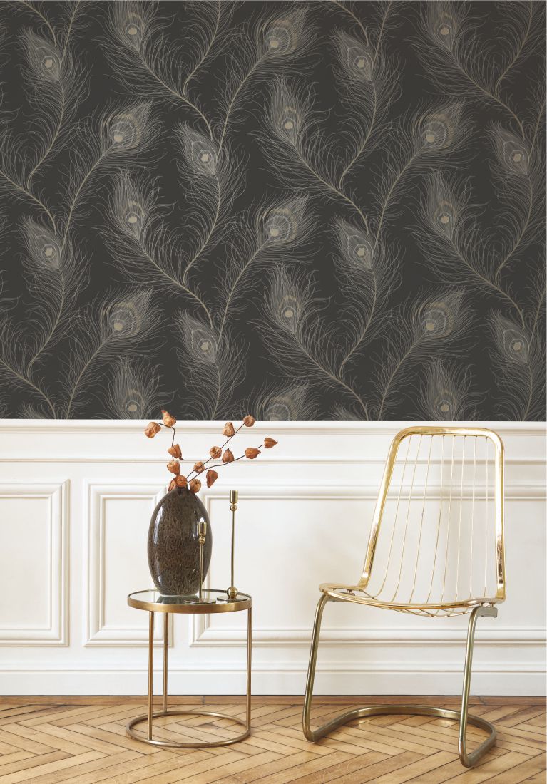 Boas, Fächer und federgeschmückte Kopfbedeckungen – stellen Sie sich Cabaret-Tänzerinnen vor, die sich kunstvoll hinter ihren Pfauen- und Straußenfederfächern verbergen… Revue lässt diese ikonischen Szenen der Pariser Cabarets mit ihrem frechen Charme wieder aufleben. Die überlappenden Federn bilden ein schimmerndes Muster auf einem eleganten, matten Hintergrund.