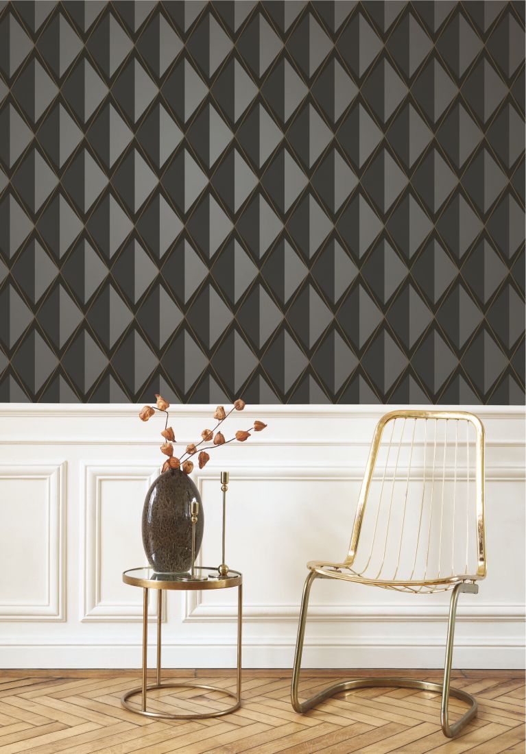 Im Rampenlicht. Zurück auf die (stumm-)silberne Leinwand mit Chaplin. Das schimmernde Gitterwerk hebt sich von einem extrem matten Hintergrund ab. Die schwierige Entscheidung liegt zwischen der markanten Taiga-Grün oder der sanften Greige-Nuance.