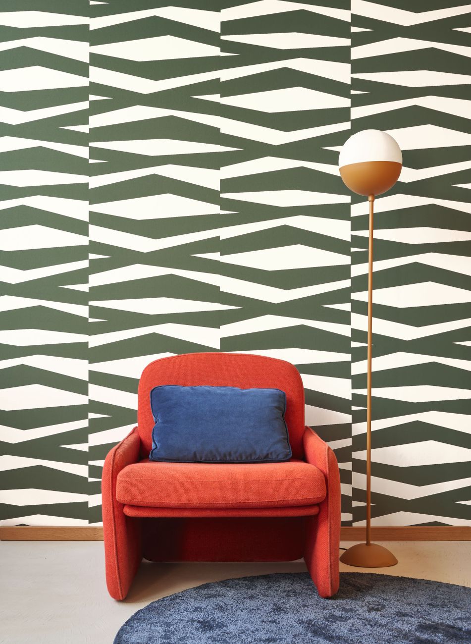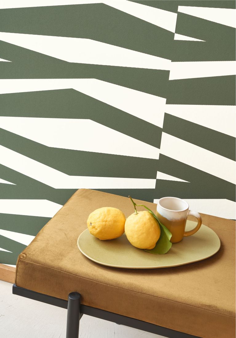 Zebra Game unterhält sich selbst, indem es seine Streifen von einer Bahn zur nächsten versetzt. Das Ergebnis sind zufällige, gebrochene Linien, die einem rätselhaften Puzzle ähneln. Zusätzlich bietet die Tapete eine sinnliche Oberfläche mit sandig-schimmerndem Finish.