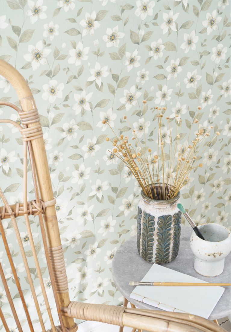 Diese großen Clematis-Blüten wurden von Julie, unserer Designerin, von Hand gezeichnet und suggerieren sowohl Kraft als auch Zerbrechlichkeit: die kräftigen Stängel, die in die Höhe ragen, und die Zartheit der pastellfarbenen Blütenblätter. Wie ein Ballett mit seinen wirbelnden Blättern summt und hebt „Clématites“ mit meisterhaftem Kunstflug ab.