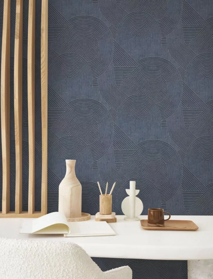 Dieses ikonische japanische Bild ist in aller Munde: ein Mönch, der langsam und kunstvoll den Sand eines Zen-Mineralgartens harkt. Jardins des Pierres greift dieses tausendfach in den Boden gezeichnete Muster auf: große Arabesken, die dank des Sandeffekts, der den Linien des Papiers verliehen wird, in 3D gearbeitet sind.