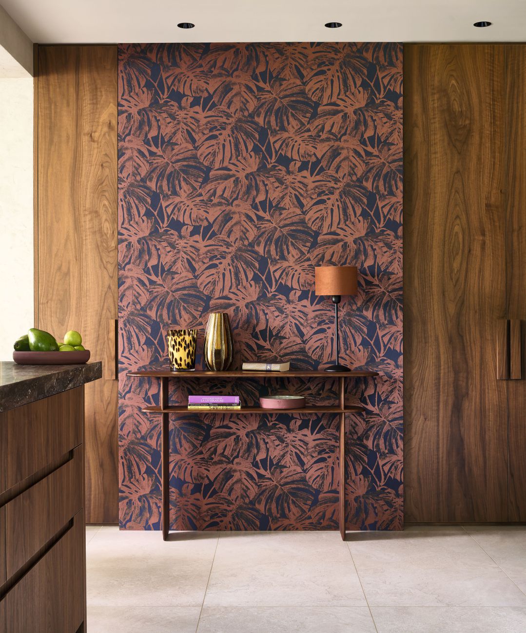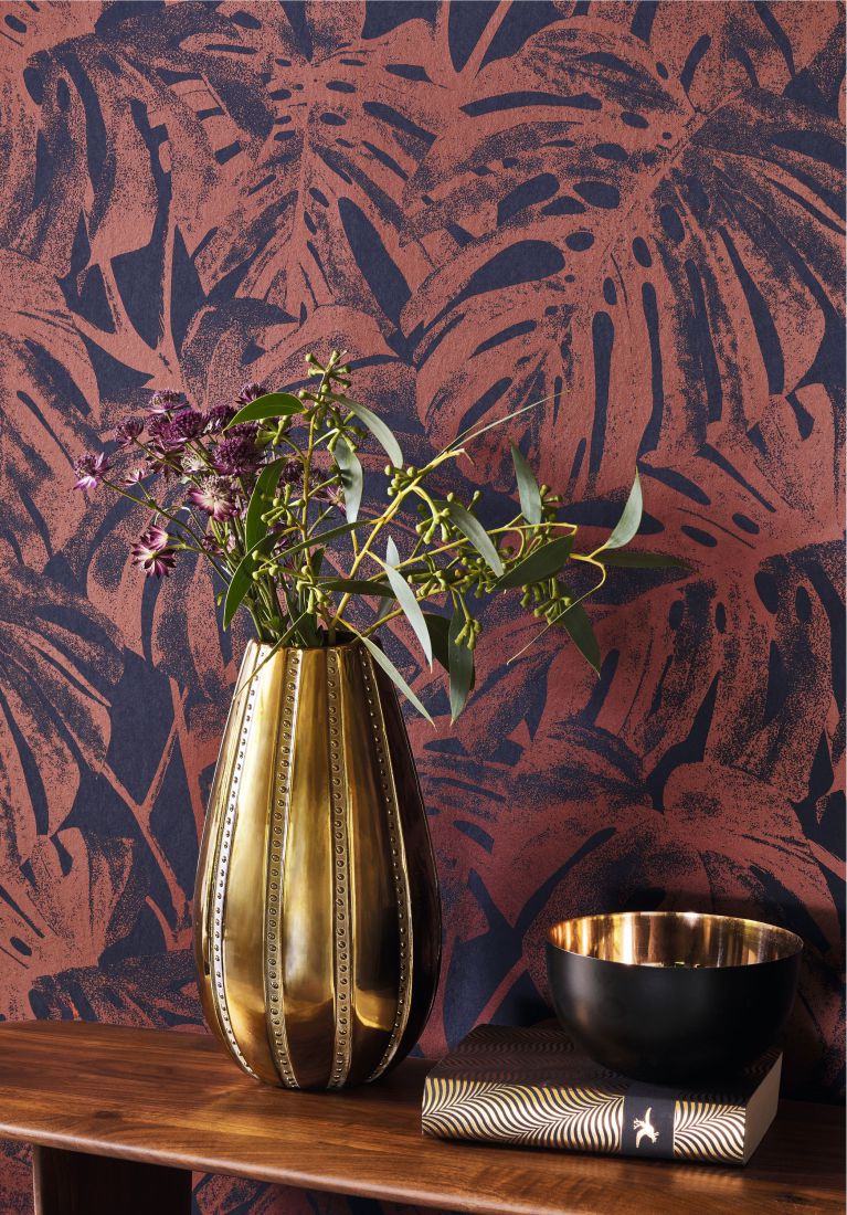 Wunderschöne Pflanzensilhouetten – Monstera-Blätter können als Schablone an die Wände gebracht werden. Mata wirkt allein elegant und lässt sich zudem perfekt mit dem Ocelot-Fries kombinieren.