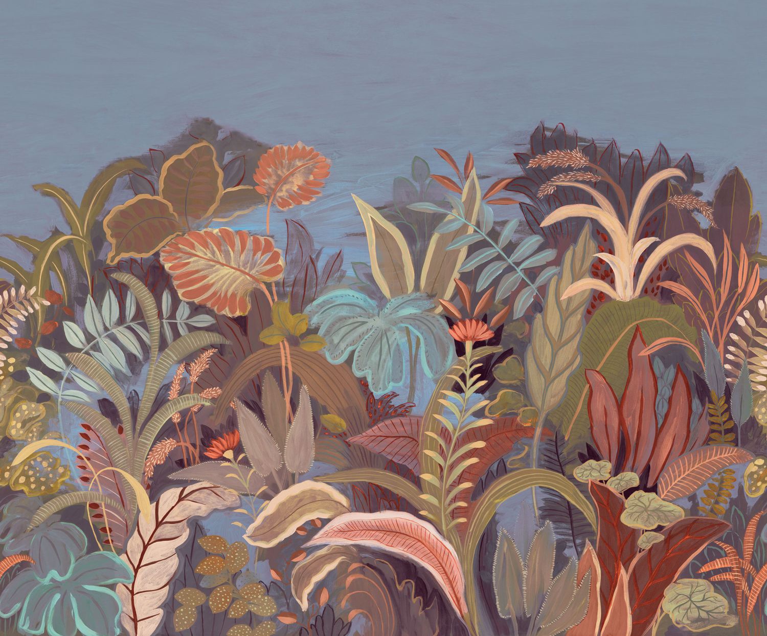 Wie in den farbenfrohen Fantasien von Douanier Rousseau setzt Brasilia auf die lebendige Üppigkeit tropischer Pflanzen. Dieses Panorama verzaubert mit unzähligen Details und Überraschungen: kontrastreiche Zweige, sternförmige Blüten und marmorierte Blätter entfalten eine faszinierende Tiefe. Ein echtes Kunstwerk – geschaffen, um im Wohnzimmer präsentiert zu werden.