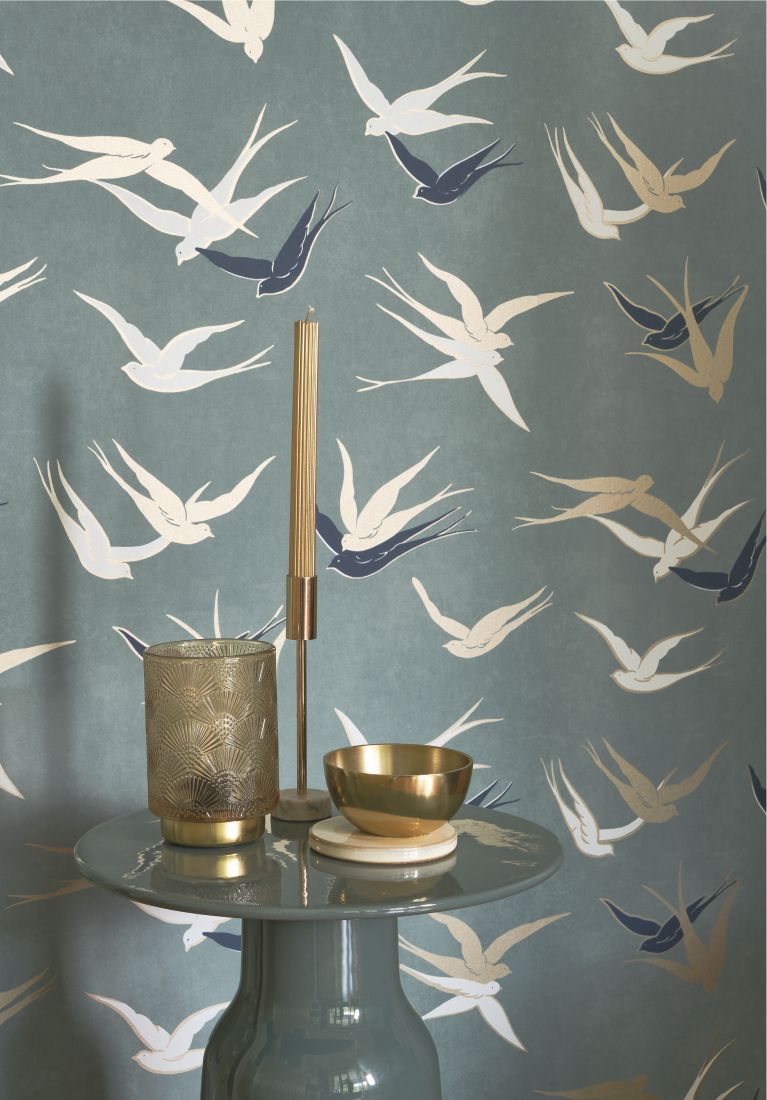 Was für eine wunderschöne Schwalbenschau! Mit Swallow können Sie den Wunsch nach Bewegung an Ihren Wänden zum Ausdruck bringen, mit dem entscheidenden Juwelen-Touch. In Schwärmen von zwei oder drei erhalten diese bezaubernden Vögel je nach Farbe einen Hauch von Gold oder Glitzer.