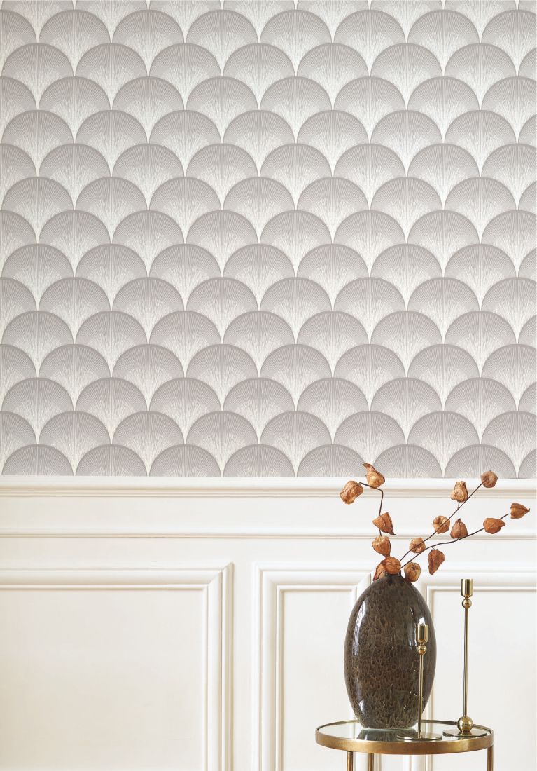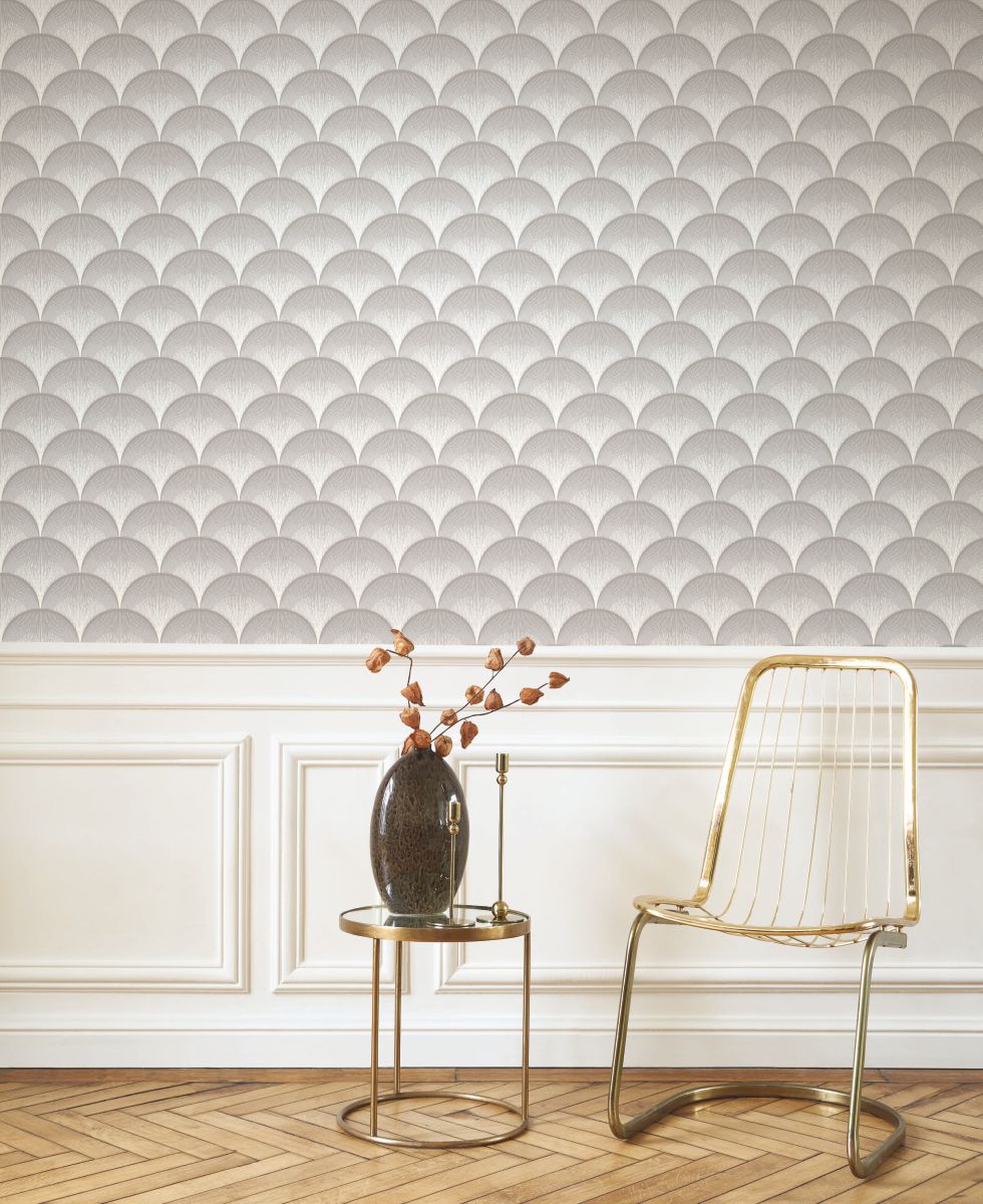 Vorhang auf … Und Ihre Tapete erstrahlt! Inspiriert von den Vorhängen der 5th Avenue-Theater geht die Broadway-Tapete keine Kompromisse mit dem Spektakulären ein. Seine abgerundete Geometrie wird durch die schillernden Linien verstärkt, die das Licht einfangen.