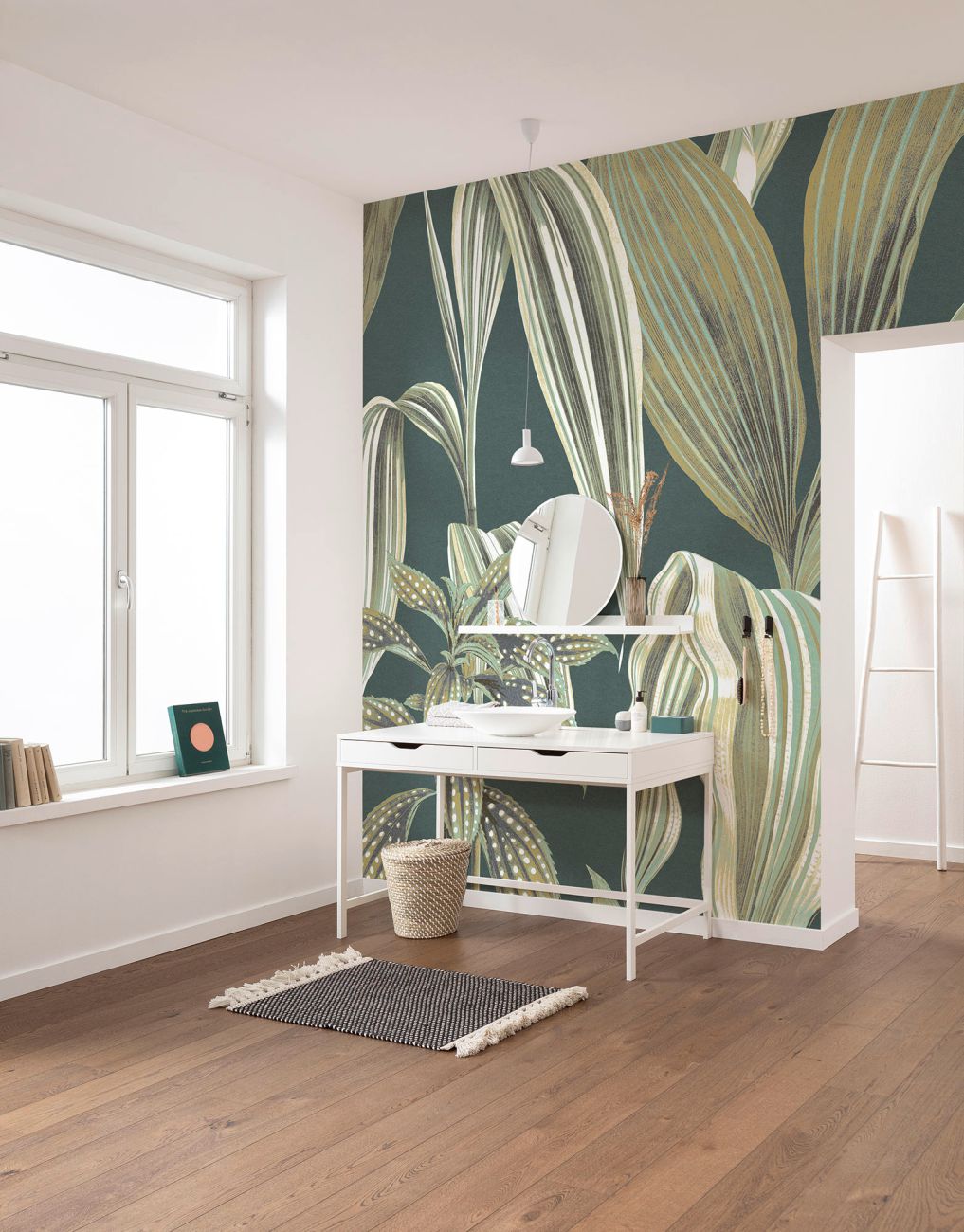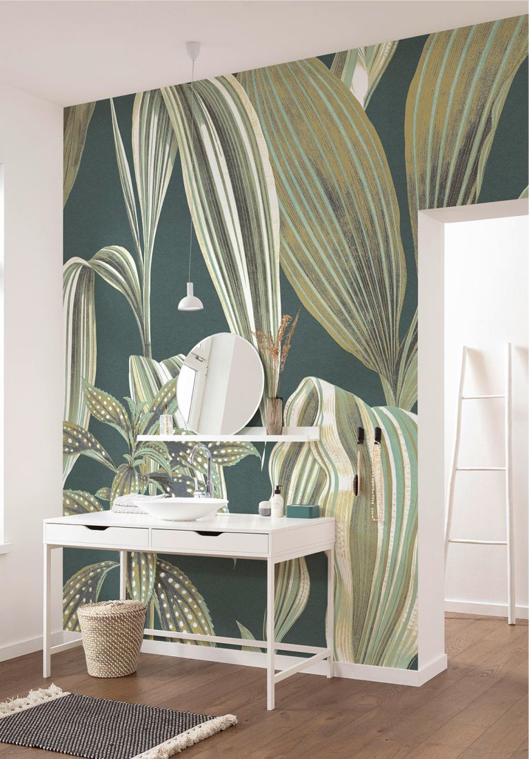 Die wunderschöne Pflanzenillustration hebt sich erfolgreich vor dem dunklen Untergrund ab. Feine Linien und detailreiche Elemente schenken der Tapete ein hochwertiges und ästhetisches Erscheinungsbild. Das Material dieser Tapete hat eine hohe Lichtbeständigkeit und ist frei von jeglichen Weichmachern.