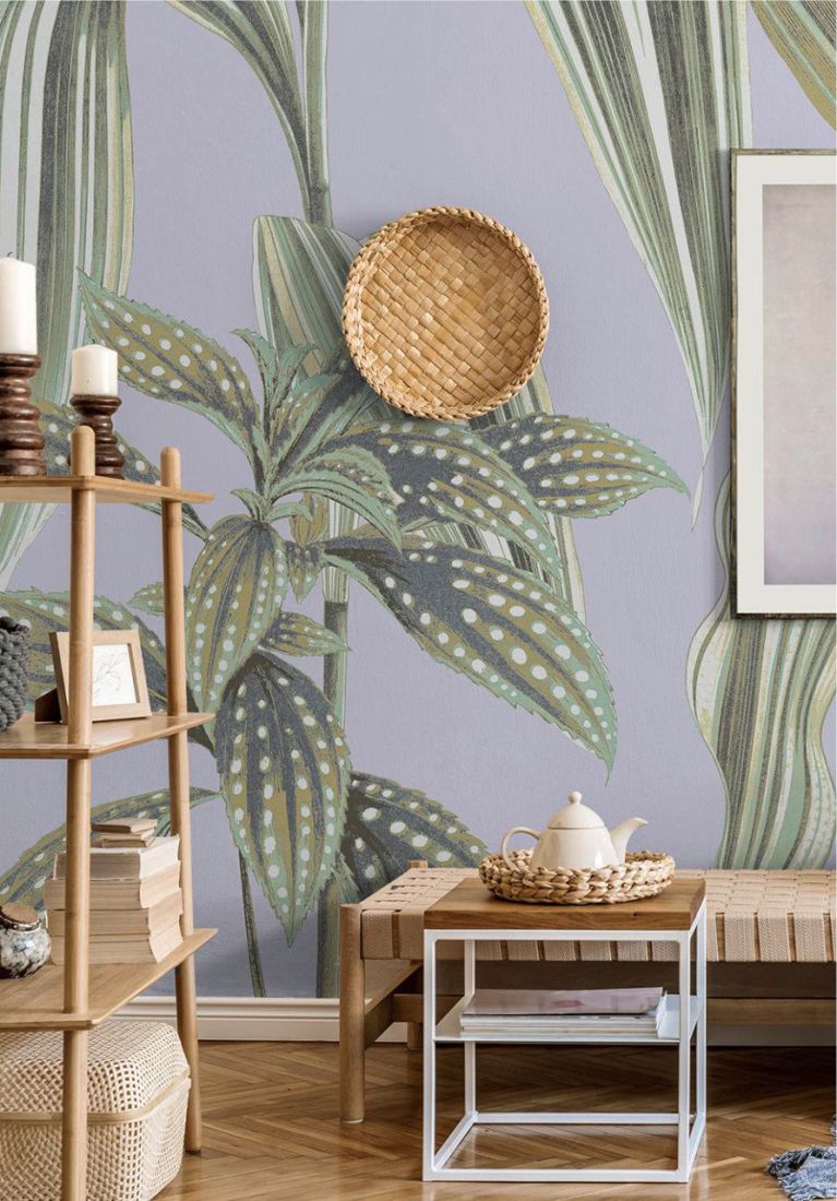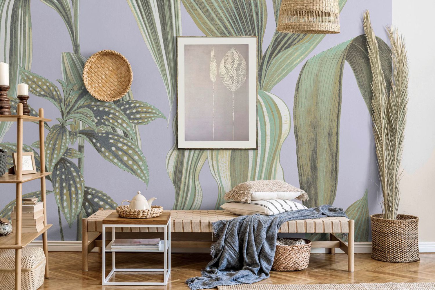 Botanische Mustertapeten bringen die Frische der Natur direkt nach Hause und verbreiten exotisches Flair in den vier Wänden. Der Pastellfarbene Hintergrund leuchtet zwischen den Pflanzen hervor und sorgt für geballte Farbenpower.