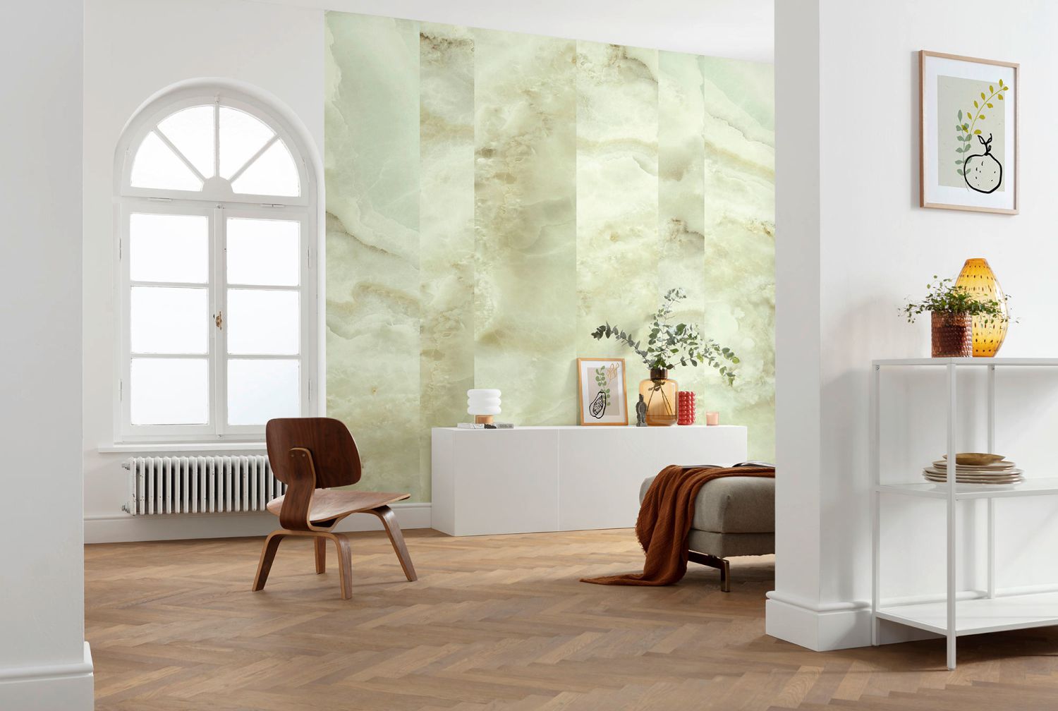 Marmor fasziniert. Die Oberfläche des wunderschönen Natursteins steht seit jeher für Luxus und Eleganz. Der warme Farbton erzeugt eine angehnehme Atmosphäre im Raum. Untermauert wird die elegante Optik durch die Verwendung von nachhaltigem Vliesmaterial und einer weichen Haptik.