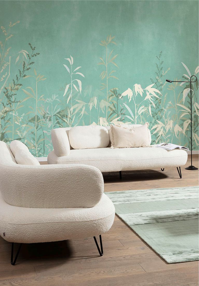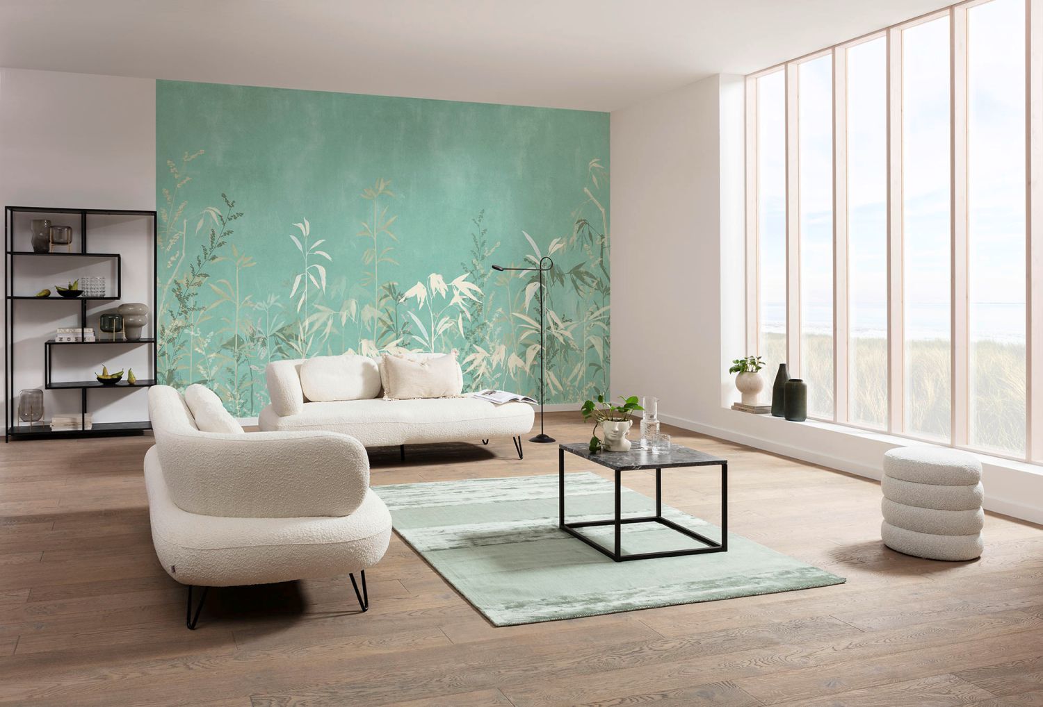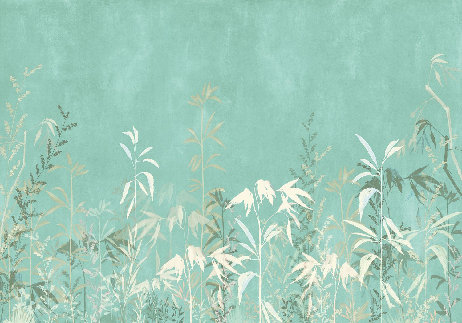 Auf der mintgrünen Oberfläche zeichnen sich zarte Gräser ab. Sie bringen die Natur nach Hause und verzaubern ihr Umfeld mit ihrer filigranen Struktur. Die Designtapete besteht aus einem qualitativ hochwertigen Material, das aus verantwortungsbewusst bewirtschafteten Wäldern produziert wurde.