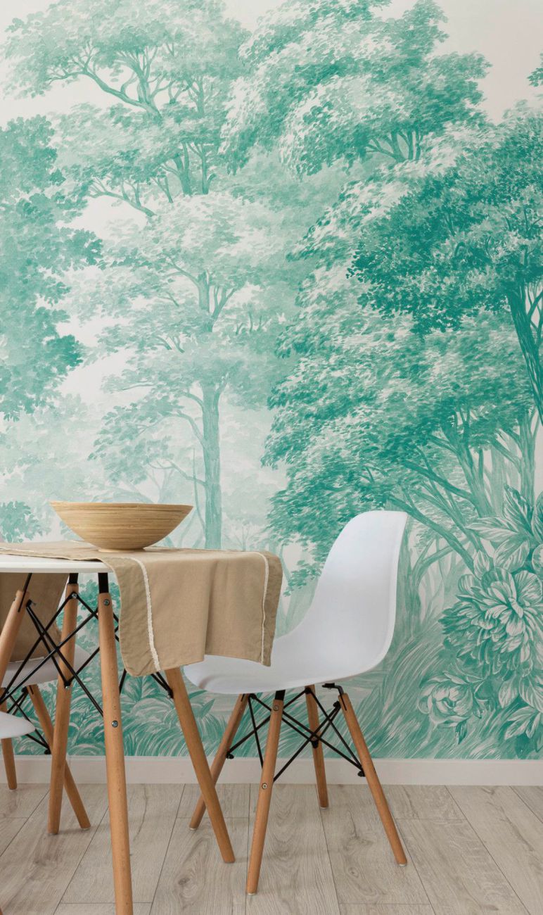 An einer malerischen Lichtung treffen sich die Vögel aus dem Wald und stimmen ein Lied an. Die filigranen Bäume wurden mit viel Liebe zum Detail illustriert. Das Vliesmaterial der Designtapete trägt zu einem positiven Raumgefühl bei und schont die Ressourcen.