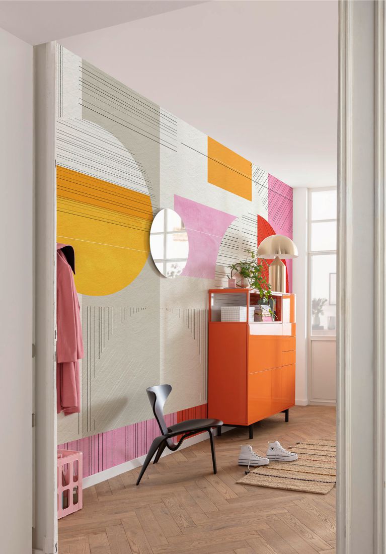 Gerade Linien, klare Formen und kontrastreiche Farben verleihen Räumen ein Gefühl von Ordnung und Struktur. Besonders die Arbeitsräume oder Hauseingänge profitieren davon. Das wohngesunde, geruchsneutrale Trägermaterial ist gut verträglich und schonend zur Umwelt.