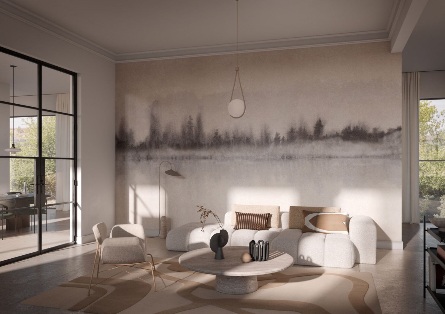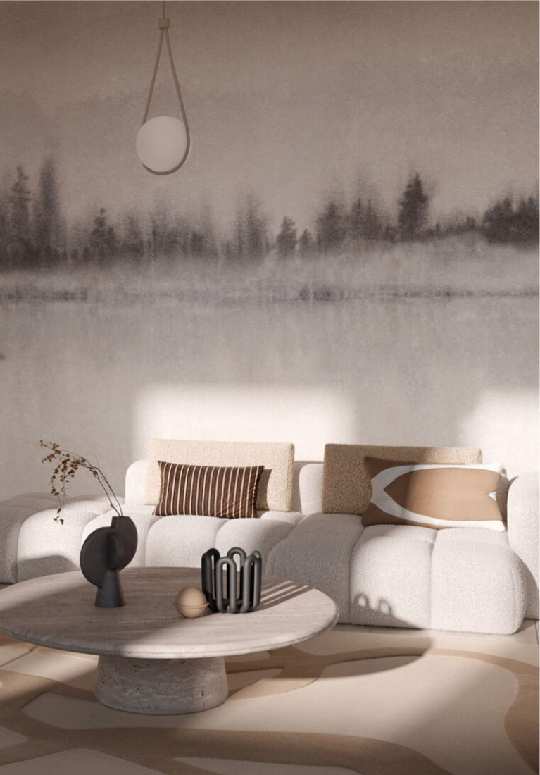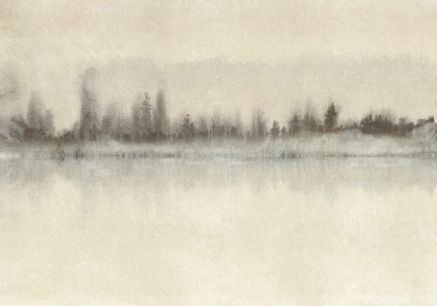 Die Umrisse eines Seeufers lassen sich erkennen, doch der Rest dieses wunderschönen Aquarelles hinterlässt Raum zur Eigeninterpretation. Ein beruhigender Anblick! Das nachhaltige Vliesmaterial ist zertifiziert und bestätigt den Bezug von Rohstoffen aus verantwortungsbewusster Waldwirtschaft.