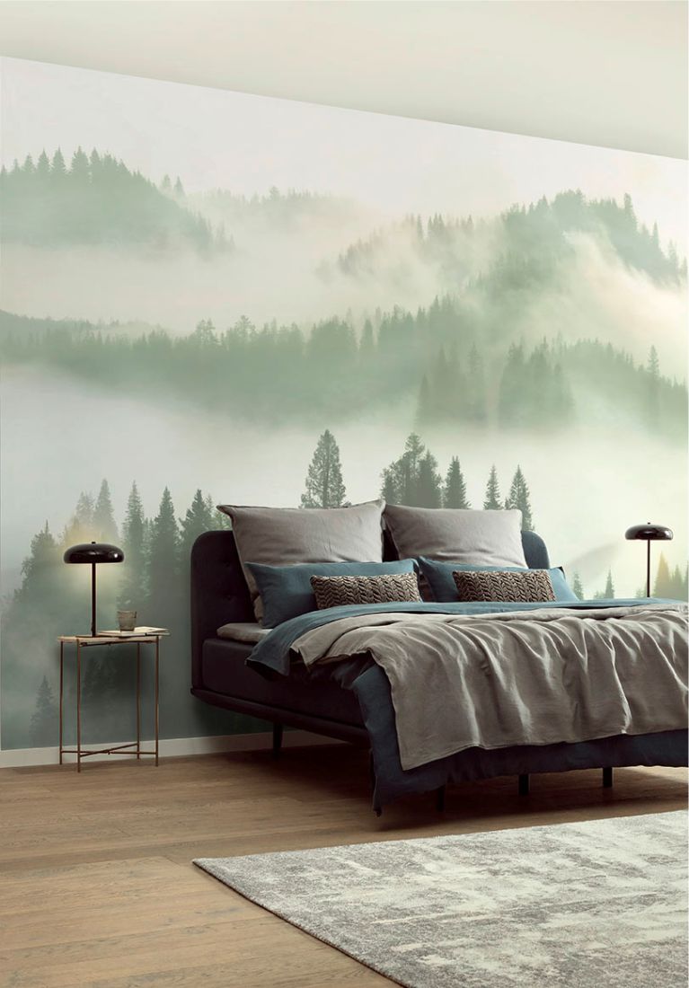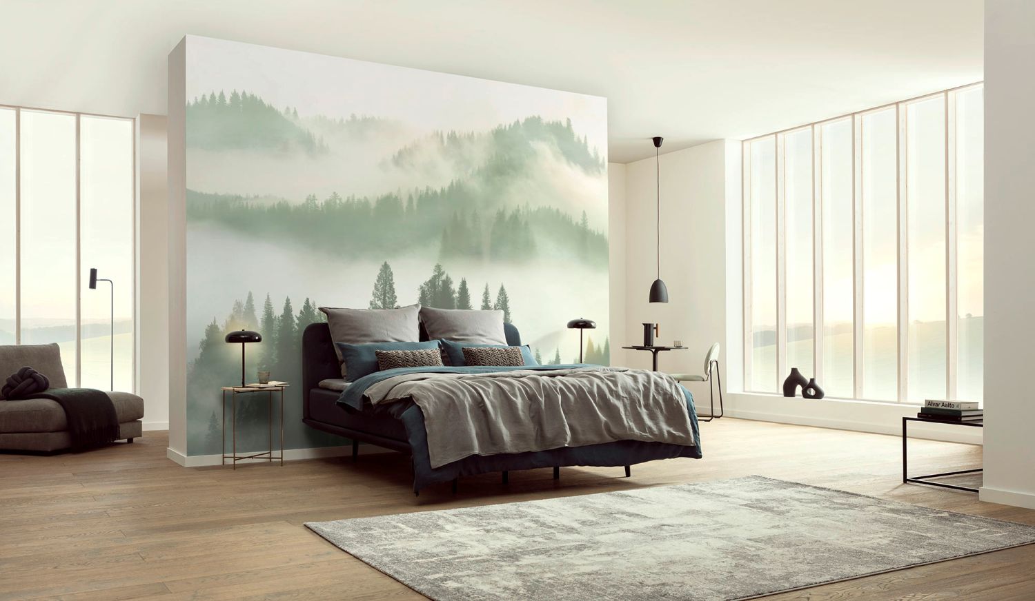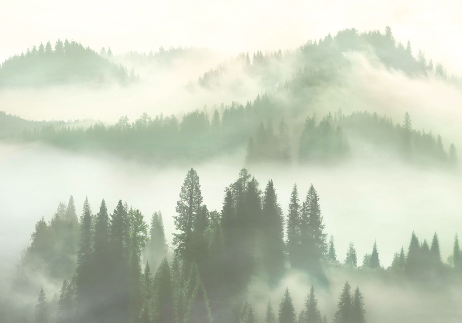 Der aufsteigende Nebel erzeugt eine mystische Stimmung im Bild. Friedlich und still wirkt die Hügellandschaft auf diesem Tapetenmotiv und überträgt diese beruhigende Atmosphäre auch auf die Räume. Die wohngesunde Vliestapete enthält keinerlei Schadstoffe und wird in einer recyclebaren Verpackung geliefert.
