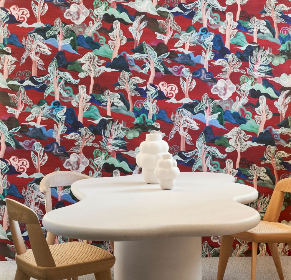 In this design, you will discover hills and trees under a soft cloudy sky. Drawn in a typical Asian style, it was named after the Saranda forest in India. A highly appropriate name, as Saranda literally means ‘seven hundred hills’.