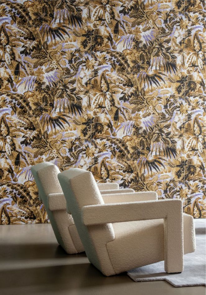 In this tropical scene, drawn in the Old English style, you will discover exotic plants and birds on a base with a bouclé textile look. The illusion of fine tears in the drawing accentuates the craftsmanship of this design.