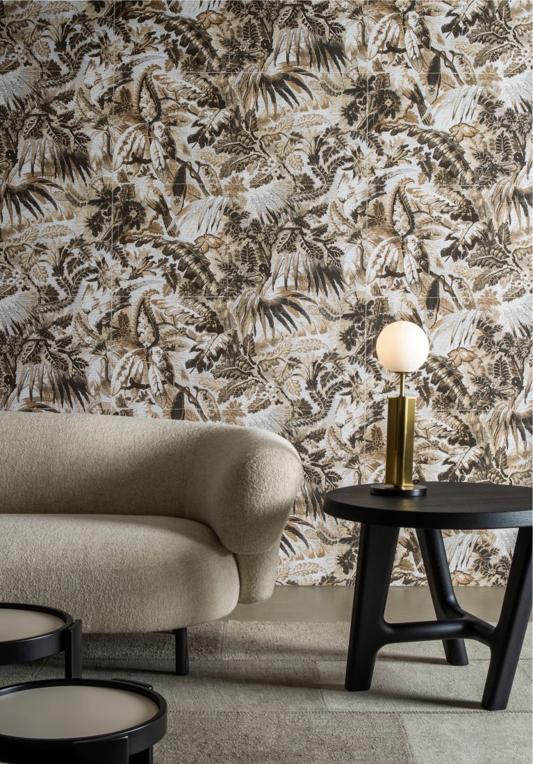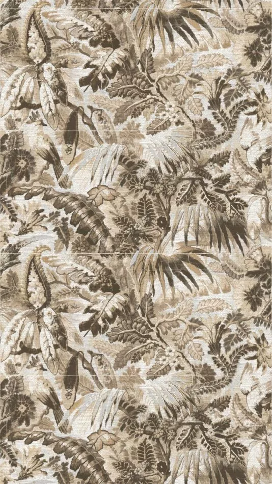 In this tropical scene, drawn in the Old English style, you will discover exotic plants and birds on a base with a bouclé textile look. The illusion of fine tears in the drawing accentuates the craftsmanship of this design.