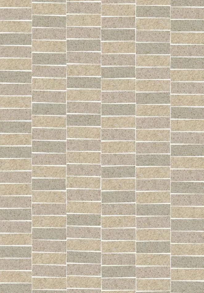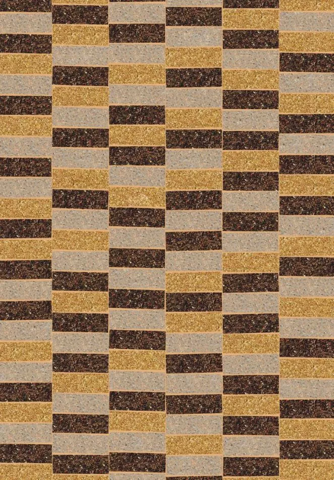 Large sheets with mica flakes* are hand-dyed for this pattern. Then rectangles are stamped out of them with the utmost care. These shapes are then glued by hand into the pattern, so that they impart a beautiful yet not too rigid effect. For some wallcoverings, we use mica in a single colour, while in others we combine three colours in a random pattern.