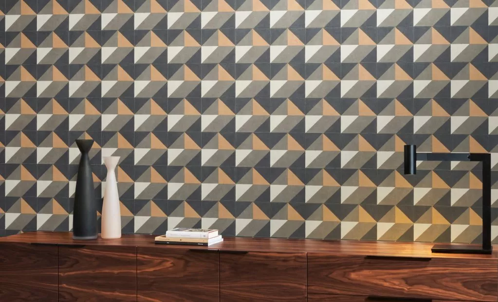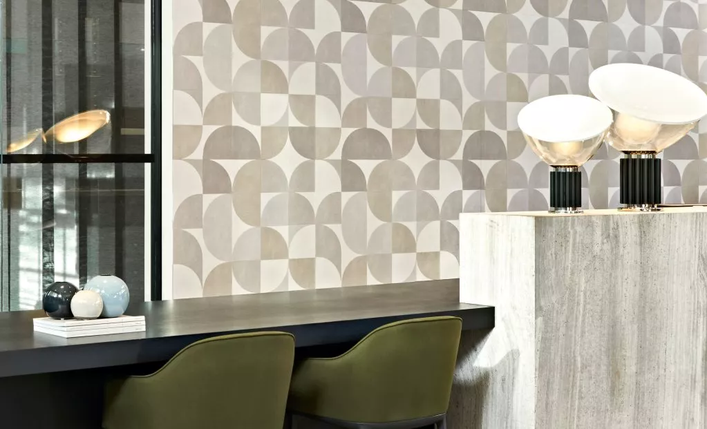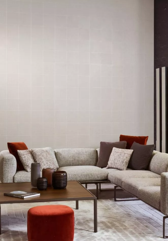 The collection consists of five different motifs. The basic reference is Campo, with beautiful, large, plain squares. The squares have a calming, almost subdued effect and really come into their own in a large space. The subtle stitched seams stand out thanks to the collection’s unicolour palette. Indistinguishable from and just as lively as genuine leather.