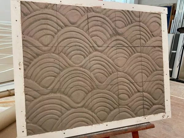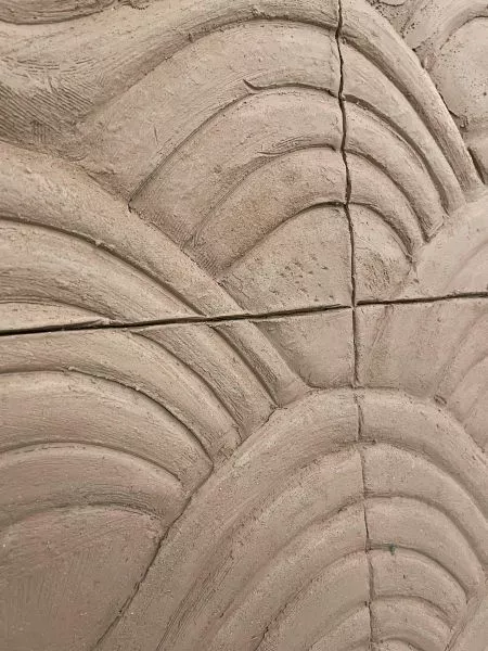 Thanks to the pronounced relief of the engravings, it is reminiscent of decorative earthenware or ripples in sand.