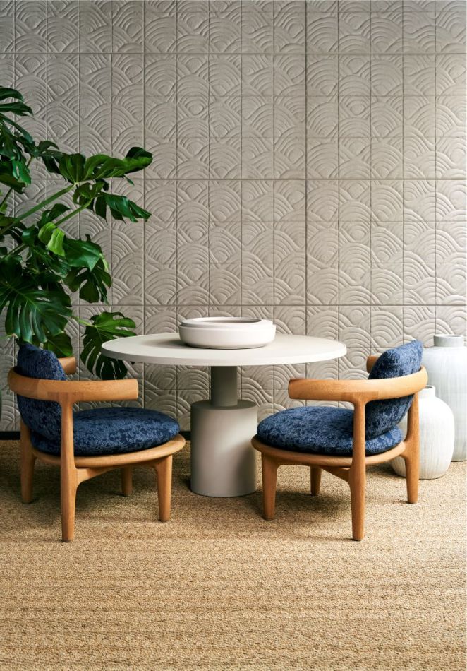 The combination of different light panels in tileform creates both a geometric and an earthy design.