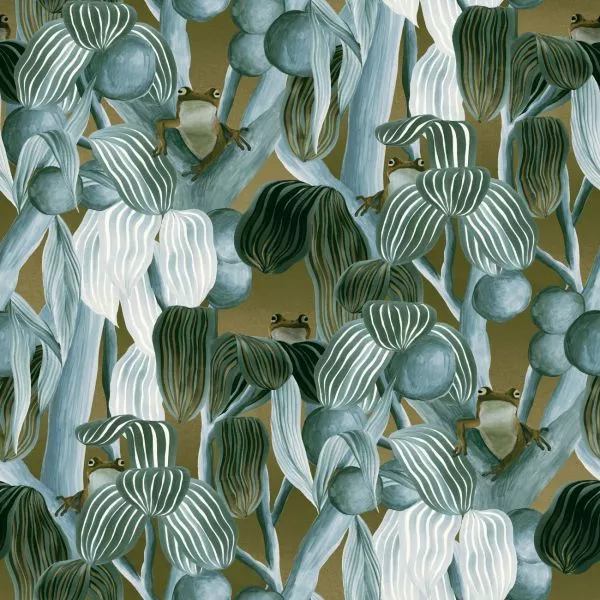 A playful representation of a family of frogs. It takes you to a beautiful fantasy world where they alone reside. This dreamy pattern is finished in a luxurious satin look.
