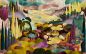 Description: Panoramic in chenille finish of a Tuscan landscape of a dreamy fantasy world
