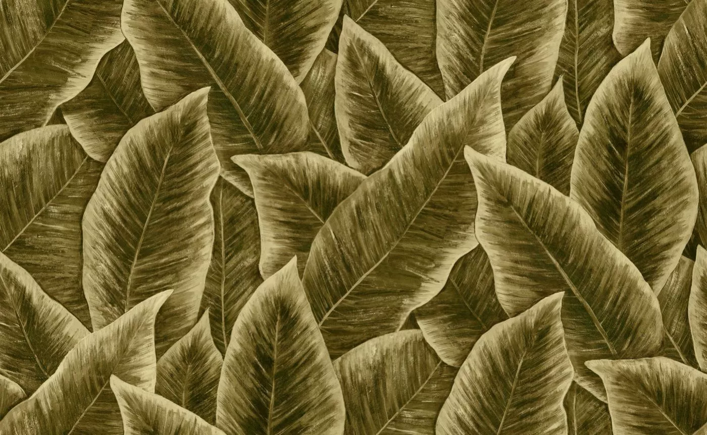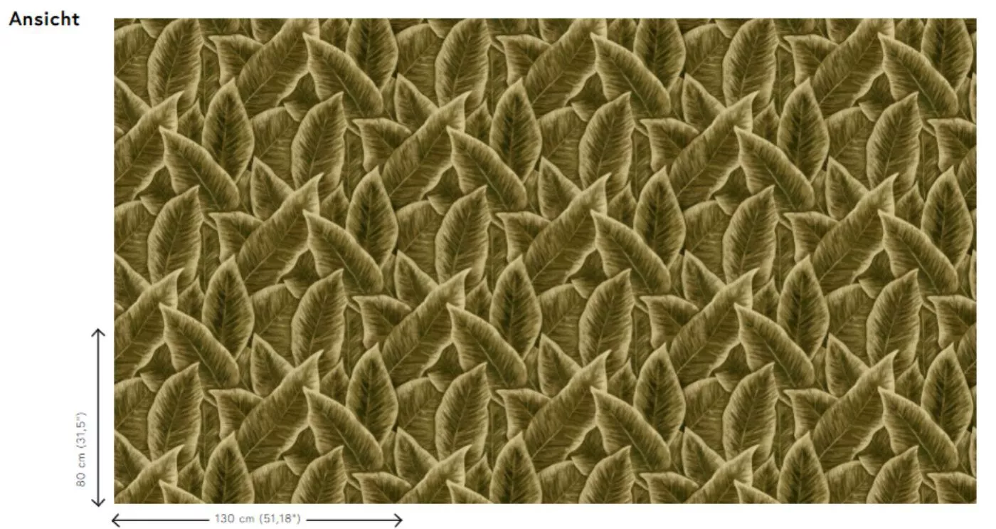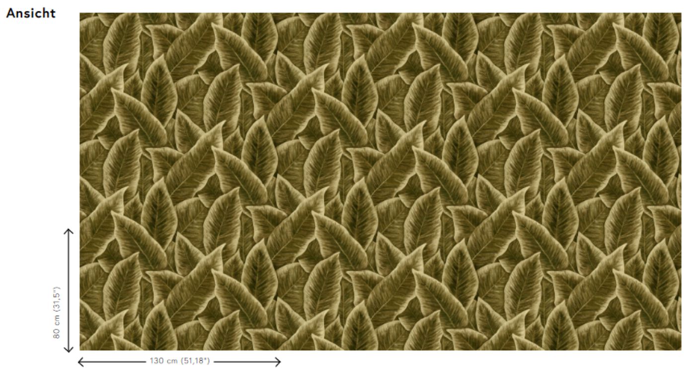 In bloom, the bird of paradise plant is characterised by its exuberant colours. The colours of the leaves of this South African plant, on the other hand, are deep green. The enlarged print of these hand-painted leaves intrigues with its simplicity and subtle finish in fine linen effect.