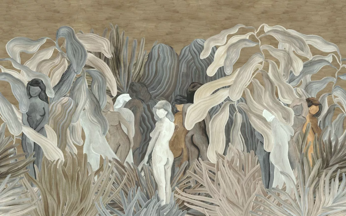 Description: Mysterious panoramic of feminine silhouettes made of velvety chenille