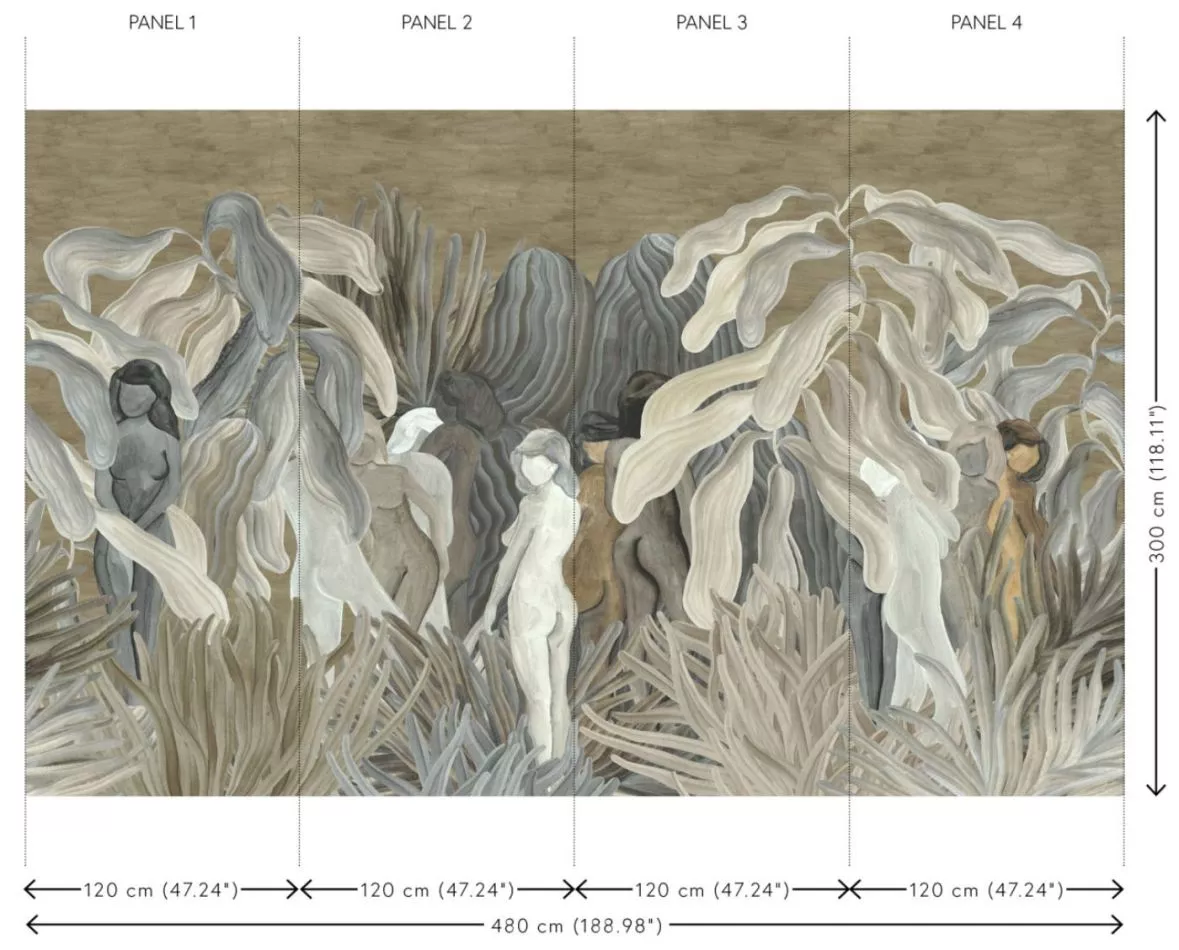 Each panoramic or decor immerses you in a fairy-tale or intriguing story. Not only the pattern appeals to the imagination, the material used is also surprising. From velvety soft silk looks and bouclé fabrics to sophisticated linen effects.The hand-painted scenes of the "Panoramiques" are artistic gems and always consist of several panels that together form one panoramic whole. "Décors" are lavish images that make a statement on the wall. These eye-catchers are available by the linear metre, easy to use in any room.