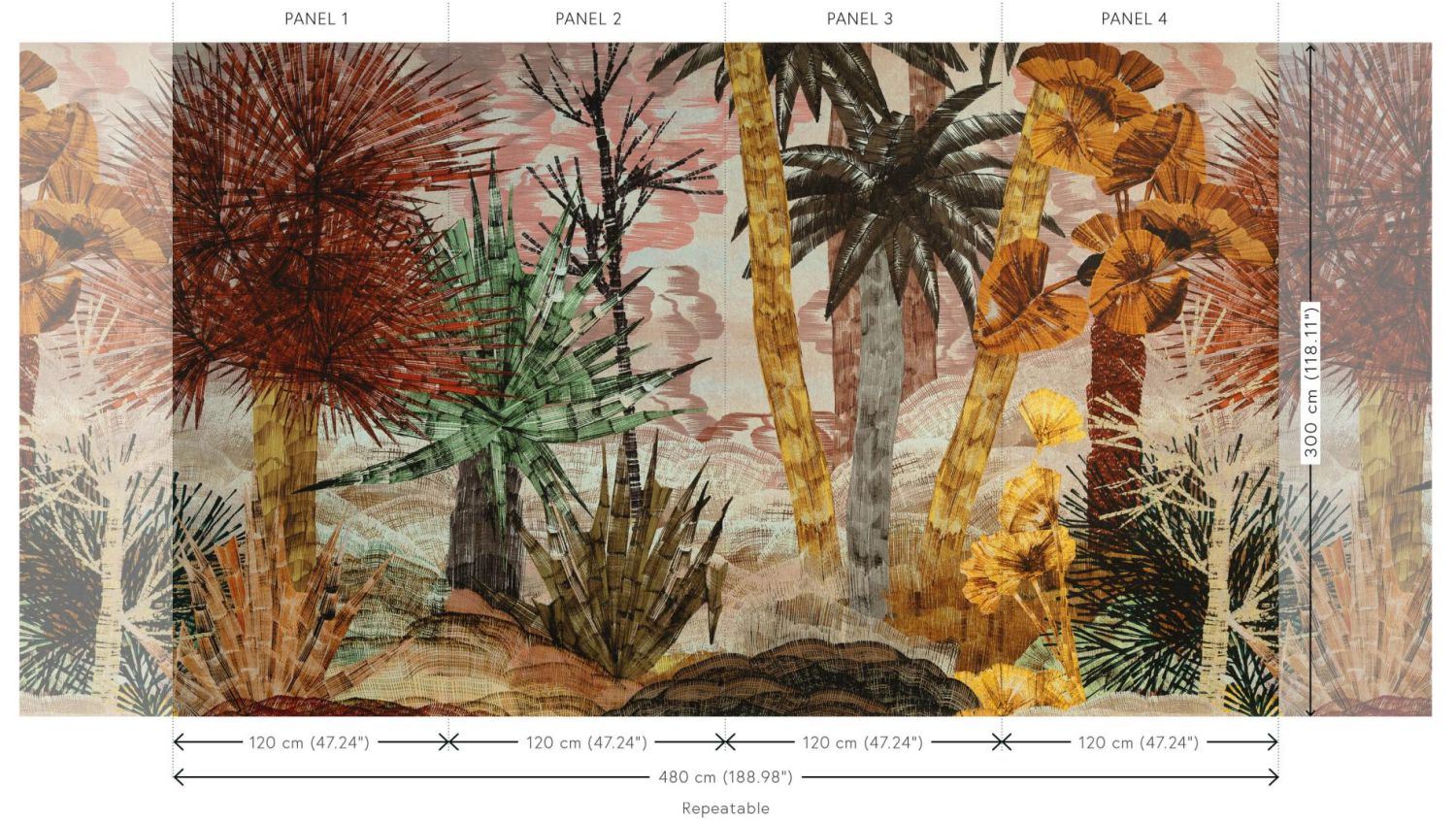 Dimensions: Panoramic of 480 cm x 300 cm = 14,4 m² (188.98" x 118.11" = 155 sq.ft), 4 panels à 120cm