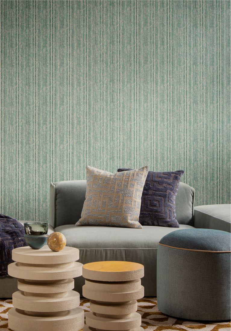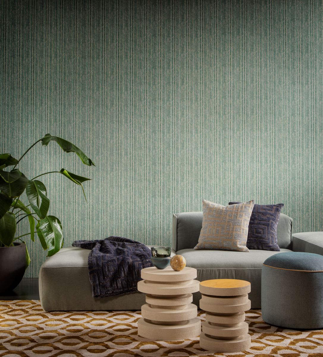 The majority of the designs are modest and are very widely applicable to add structure to the wall in addition to colour. The pattern with a chintz look is an outsider that stands out for its shine and playful chalk lines in an explosive colour palette.