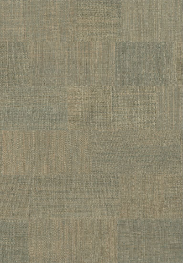 Description: Faux-plain wallcovering made of woven raffia, which is hand-laid into a subtle block pattern