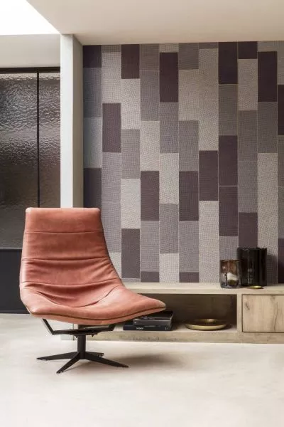 The pattern Align is a patchwork of real jute, that obtains an excellent colour fastness thanks to a special treatment.