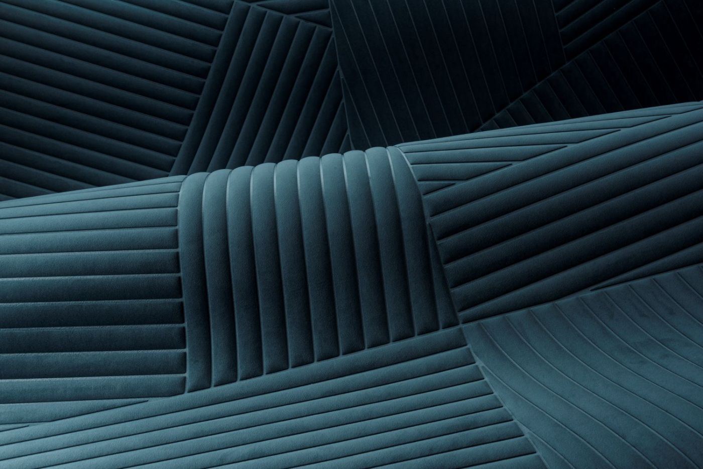 Description: Geometric pattern creating a captivating 3D effect with a soft velvet textile finish
