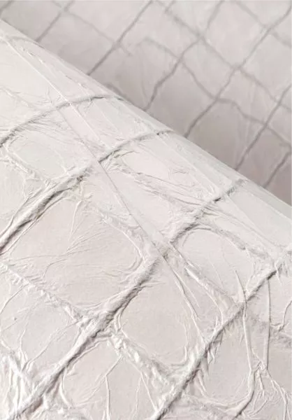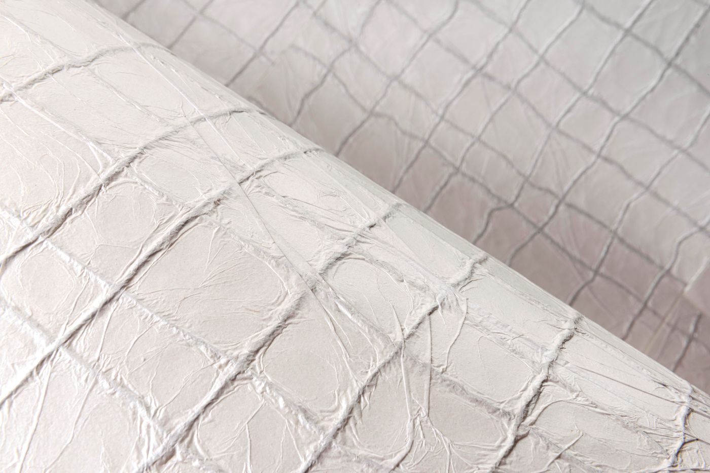 Ténéré, an area in the southern Sahara, is known as one of the driest deserts in the world. The dehydrated and cracked desert soil forms the inspiration for this lacquered imitation leather.