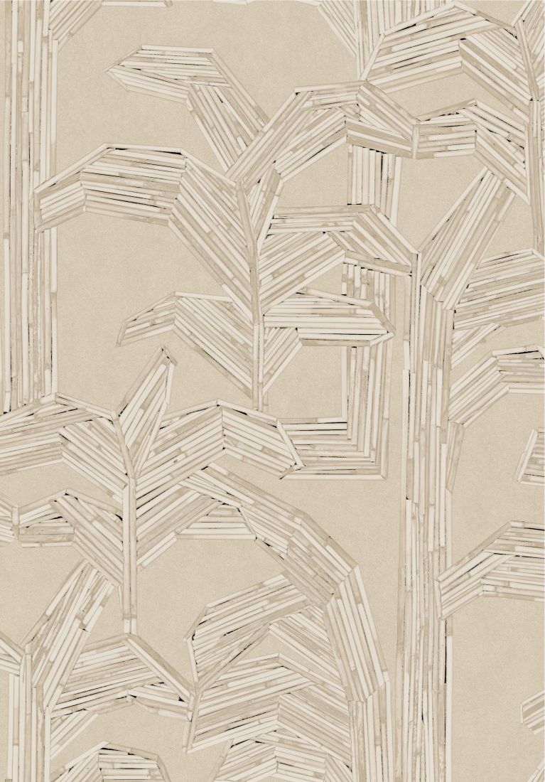 Description: Inspired by a textile made from the bark of fig trees, inlaid with small pieces of rattan