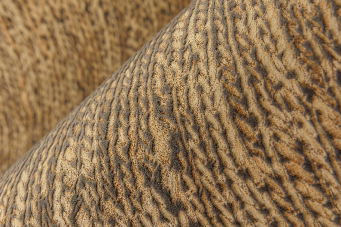 The Tresse design brings a playful note to the collection with a print of casual braids made of natural fibres. Some are very finely braided, while others are a little thicker. A thin layer of velour ensures a soft finish and accentuates the natural print.