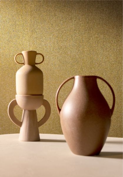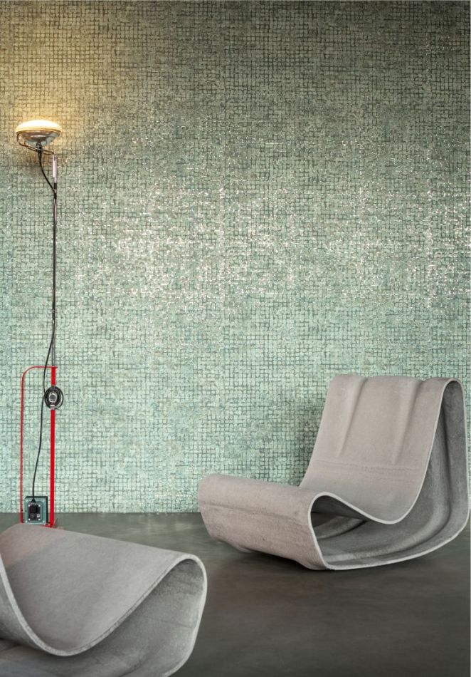 Tessera draws its inspiration from the small squares made of stone, ceramic, terracotta or glass that are used to make mosaic floors or decorative jewellery. This pattern has a highly luxurious feel thanks to the shiny look in the metallic shades of silver, gold, bronze and rose.