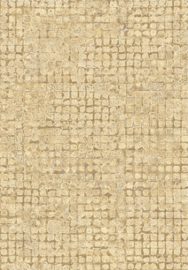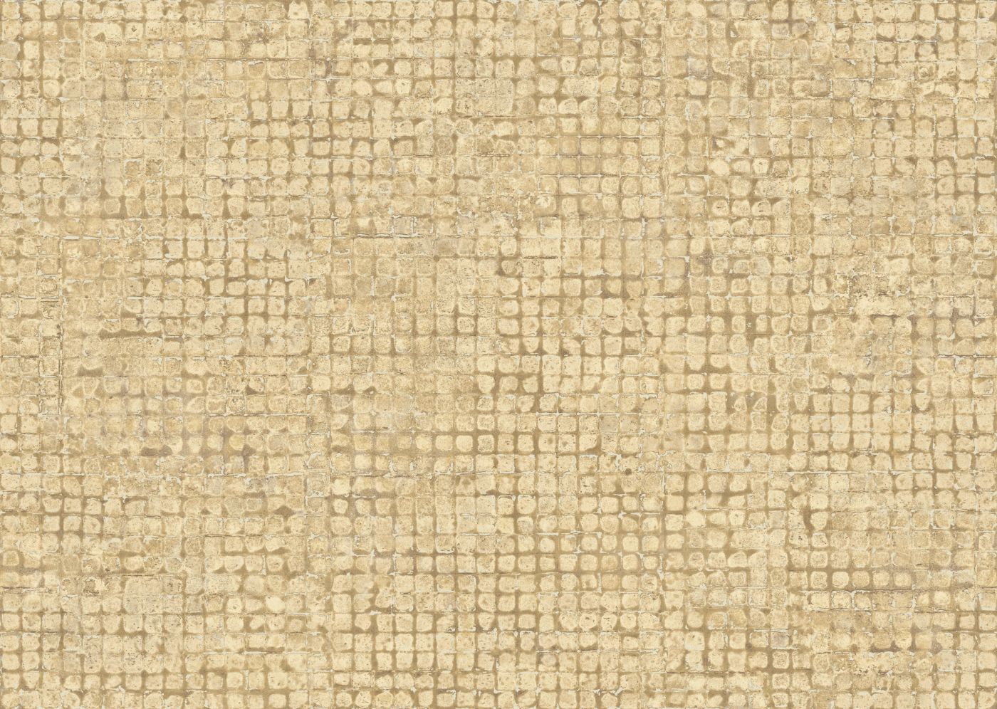 Large mosaics with a metallic accent catch the eye in this weathered block pattern, creating an incomparable graphic effect. Mosaics have adorned the walls and floors of countless squares, palazzos and historic buildings for centuries. This is a characterful wallcovering with plenty of history.