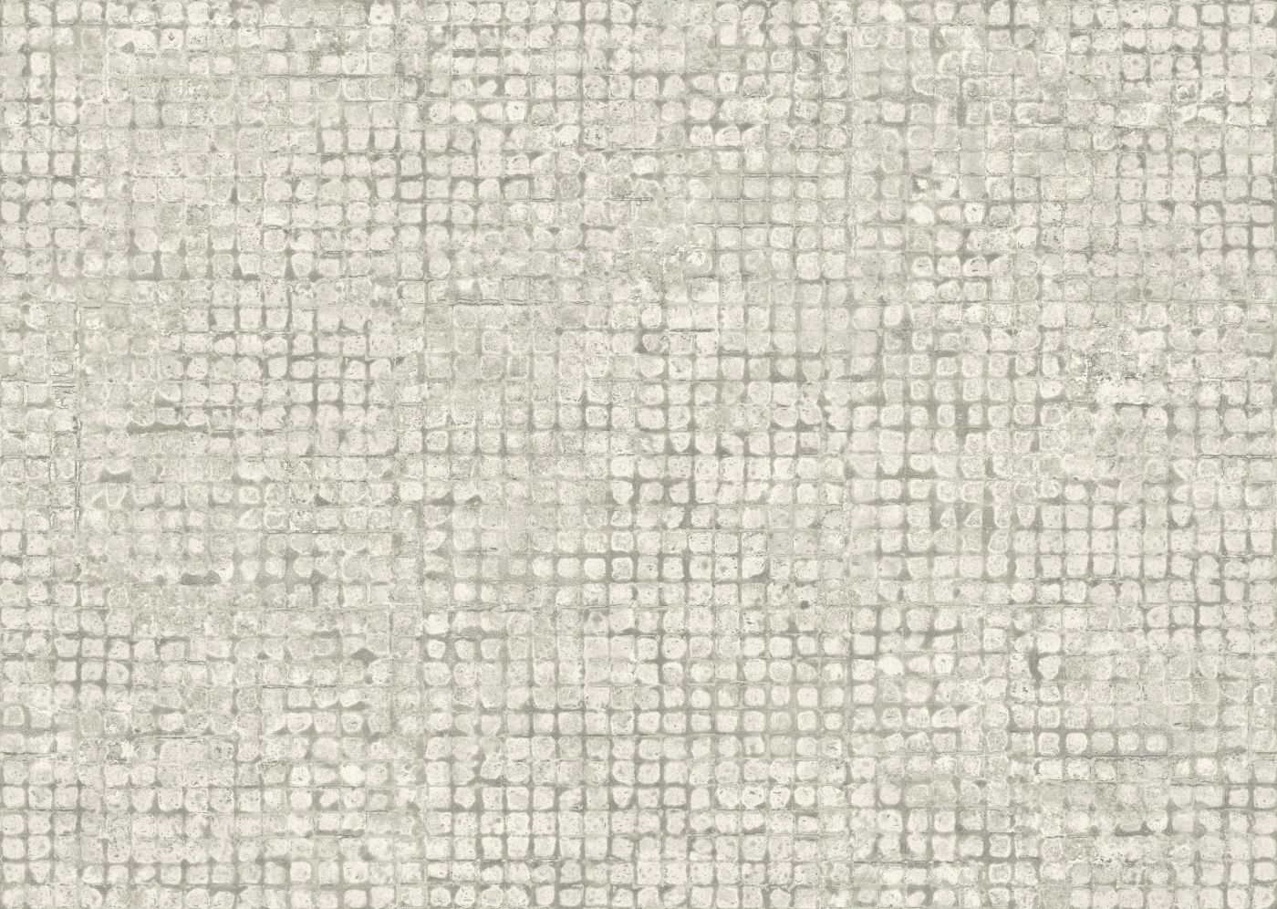 Large mosaics with a metallic accent catch the eye in this weathered block pattern, creating an incomparable graphic effect. Mosaics have adorned the walls and floors of countless squares, palazzos and historic buildings for centuries. This is a characterful wallcovering with plenty of history.