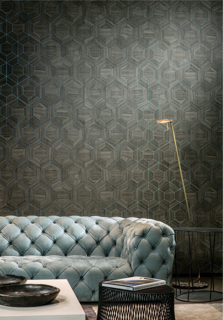 Hive consists of inserts with a wood structure on a substrate of shiny film. The film appears in fine lines between the inserts, creating a hexagonal shape. In some colour combinations, they have a bright colour, in others a gentler, silvery sheen.