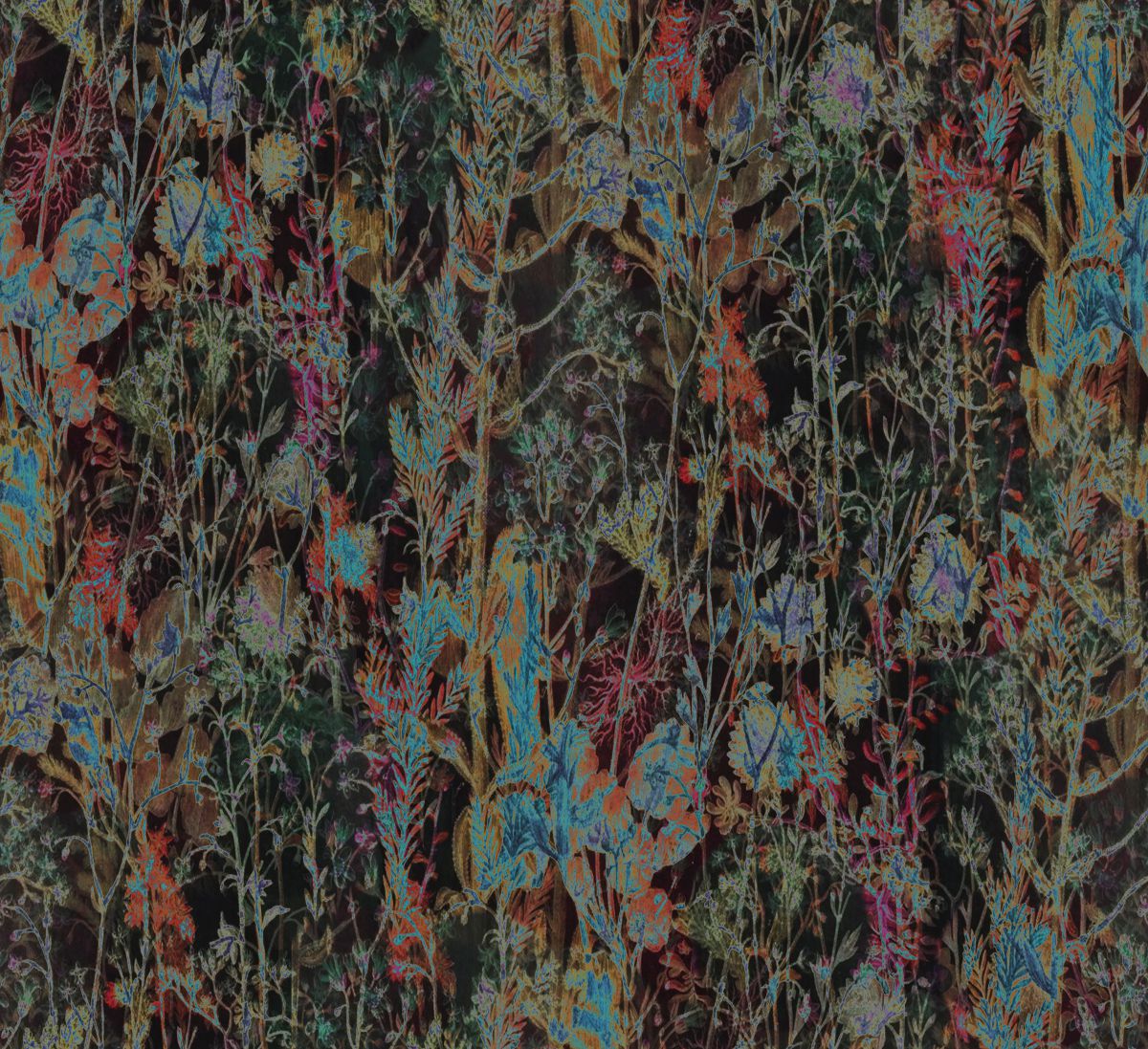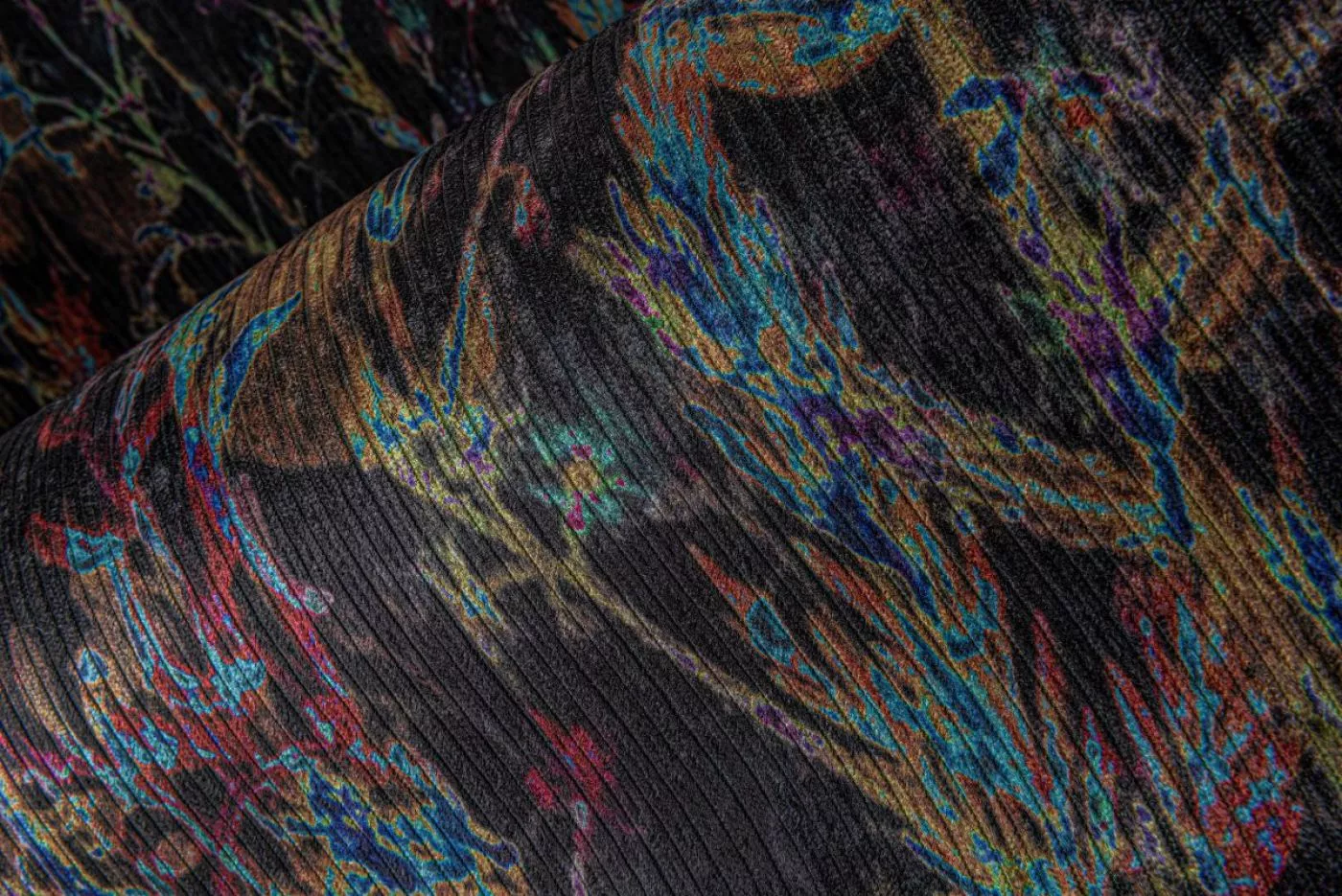 This botanical image represents a colourful bouquet expanse. The distinct design has on the one hand a very luxurious appearance and on the other hand a spontaneous and playful character. The expressive combination of the colours, the soft ribbed velvet and the frivolous design characterises Wildflower.